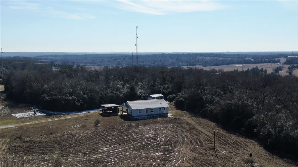 Set high on a hilltop in Robertson County, this 13-acre property is the kind of place that invites you to slow down and stay awhile. With a wildlife exemption already in place, the land is remarkably low-maintenance, leaving more time to travel, garden, or simply enjoy wide-open views stretching toward Franklin and the surrounding countryside. The home is efficient, comfortable, and thoughtfully laid out, featuring two bedrooms and two baths with an open living and dining area that feels welcoming and easy to maintain. Durable wood-look tile flooring, LED lighting, and a well-appointed kitchen with quality finishes create a clean, modern feel that balances function and comfort. An attached carport feeds a rainwater collection system, supporting a more self-sufficient lifestyle while helping keep operating costs low. Outdoors, the property is designed for both practicality and enjoyment. Raised garden beds are in place for seasonal planting, while a storage shed with A/C, water, and a composting toilet provides flexible space for hobbies, gardening, or a quiet workspace. A conex container offers secure storage for equipment and tools. Rolling terrain, abundant wildlife, and peaceful privacy enhance the sense of a personal retreat without demanding constant upkeep. Whether you're looking for room to grow, a place to gather, or a manageable acreage and space to enjoy the outdoors, this hilltop property offers space, flexibility, and a setting that's increasingly hard to find.