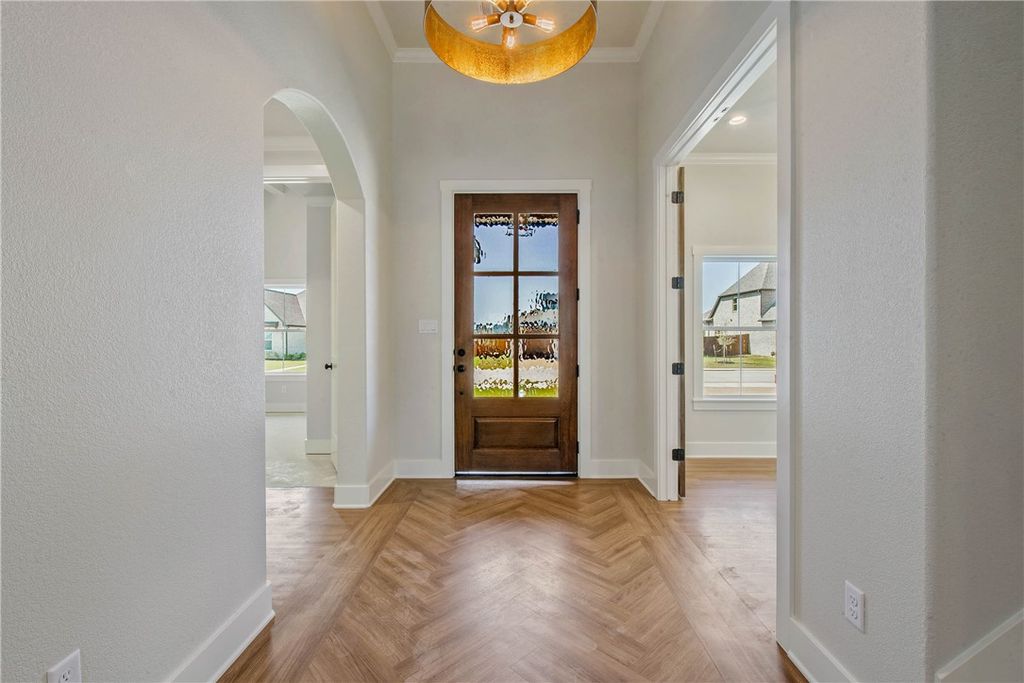This beautiful 5-bedroom 4-bathroom, PLUS a flex room, home offers a spacious open floor plan with custom cabinets and charming interior brick accents and beams. The large pantry and utility room add extra convenience, while the outdoor kitchen and large back porch are perfect for entertaining. Featuring 4 bedrooms plus the flex room downstairs, and upstairs, you'll find a versatile room that can serve as a bedroom or second living area, complete with a full bathroom. Built by Heath Townsend Homes, known for their elegant designs and high end custom finishes, this home is located in the prestigious Greens Prairie Reserve neighborhood, within the highly-rated CSISD school district.