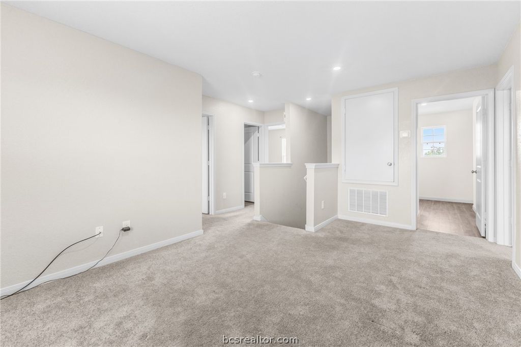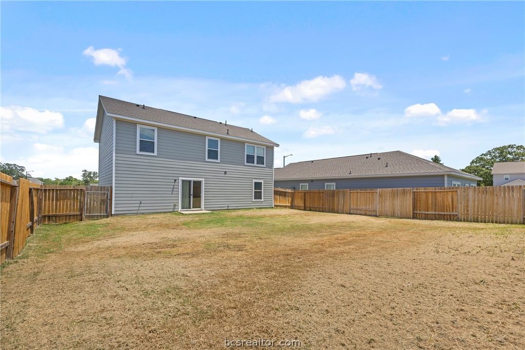 This beautifully maintained 4-bedroom, 3-bathroom home in Foxwood Crossing at 6044 Toby Bend in Bryan, TX feels practically new, having been built in 2023 and refreshed with recent interior paint for a bright, move-in ready presentation. The open-concept layout centers around a well-appointed kitchen with granite countertops, a walk-in pantry, electric range, and bar seating that flows into the dining and living areas. A spacious upstairs game room/flex space adds versatile living potential, while the primary suite features a walk-in closet and en-suite bath with dual vanities and granite countertops. Stylish vinyl flooring runs through the main areas with carpeted bedrooms for added comfort. A two-car garage and large backyard complete the package. Residents enjoy walking paths and a pet-friendly community with a low HOA of $150/year, just minutes from RELLIS Campus, Texas A&M, Highway 47, Walmart, and dining along FM 2818, offering a perfect balance of convenience and suburban peace.