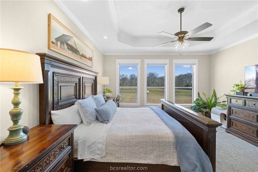 Tucked away in the tranquil Hunters Crossing Estates of Bryan, this home is a harmony of elegance, comfort, and modern convenience. The open-concept layout welcomes you with a sunlit kitchen and living area, where large windows frame stunning views that stretch across the backyard to the edge of the property. Plantation shutters grace the front windows, while voice-activated blinds in the rear bring a touch of smart-home sophistication. This 3-bedroom, 3-bathroom beauty offers more than just bedrooms, with a dedicated office and a versatile family room that's ready to adapt to your needs"”whether it's work, relaxation, or play. The master suite is truly a showstopper, featuring soaring ceilings and a spa-inspired bathroom complete with a luxurious walk through shower with dual entrances, a deep freestanding soaking tub, and a massive walk-in closet that conveniently connects to the utility room. Step outside and discover the endless possibilities of your own private retreat, with wooded views and no back neighbors. The beautifully landscaped yard, with classic wood fence in the back, is great for hosting lively gatherings or enjoying the grandeur of the morning sun rise. Dreaming of a pool? This expansive space is your blank canvas to create the ultimate backyard oasis. Combining style and functionality, this home is ready to make your vision a reality!