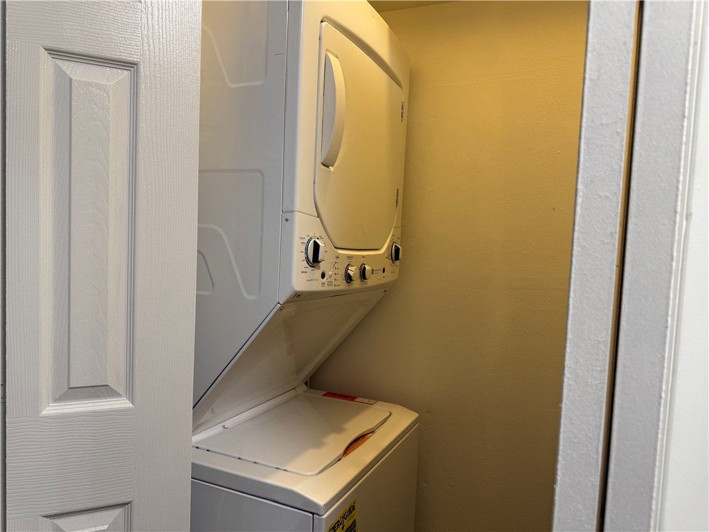 Beautifully updated one story condo is conveniently located near the front of the complex with assigned parking space. The two bedrooms are spacious with large closets. The updated back deck is accessible from both the rear bedroom and living area looking out to an enclosed green space. Kitchen and bath are nicely remodeled with new cabinets, granite countertops and tiled shower. The home includes a stackable washer/dryer, refrigerator, range and dishwasher. Home is leased through May 2027.