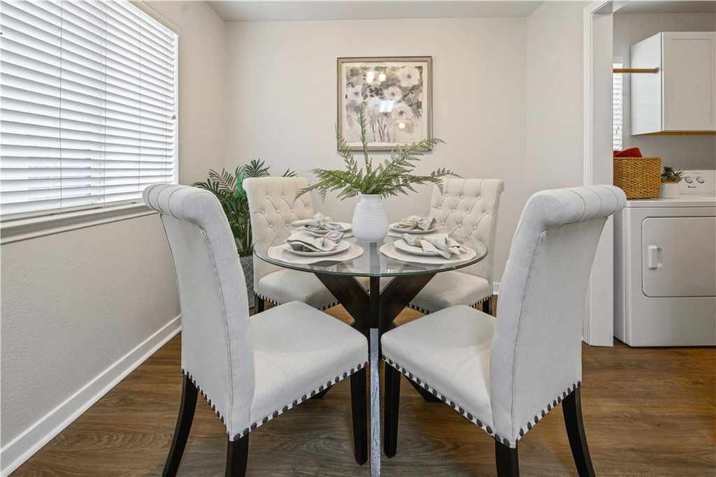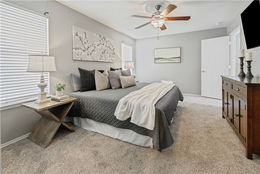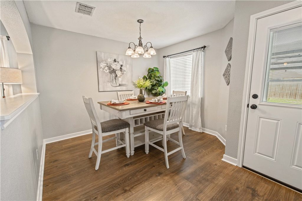 Welcome home to this inviting property in the desirable Meadowcreek neighborhood of College Station, where peaceful surroundings meet everyday convenience. Residents enjoy access to a community pool and playground, adding even more to love about the location. Inside, you're welcomed into a spacious living room filled with possibility, easily accommodating a variety of furniture layouts to fit your lifestyle. Just beyond, the dining room overlooks the living area, creating an open yet defined space for hosting dinners or gathering with friends. The layout flows seamlessly into the kitchen, designed for both function and connection. Tucked just off the kitchen, a cozy breakfast room invites slow mornings with coffee or casual weeknight meals. The primary suite is a relaxing retreat, complete with a large closet and and generously sized bathroom with soaking tub and shower. Two additional bedrooms each offer their own walk-in closets and share a well-appointed bathroom. A half bath downstairs ensures guests are comfortably accommodated.