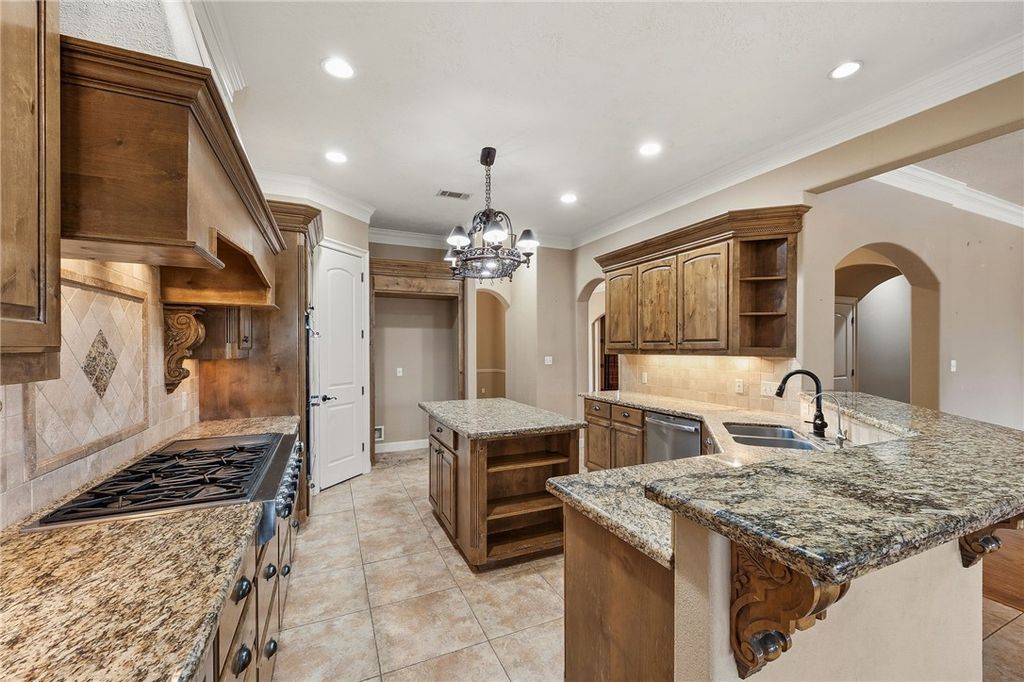 Just listed... This massive 5,091 square foot home has everything you need. When you enter the home through the grand foyer with an aesthetic staircase, you will have a large office with French doors to the left and a formal dining room to the right. From the living room you will have an open concept floor plan that will include a chef's kitchen, entertaining bar and kitchen bar, breakfast room and back door to the patio. In your living room, there are seven foot windows overlooking the screened in porch, a fireplace, mantle and a hearth. The kitchen offers an island, knotty alder cabinets, granite countertops, tumbled stone backsplash with double ovens, six burner flat top with a griddle and a wine fridge. In the primary suite you will have access to the outside, two walk-in closets, separate shower and tub, a water closet with an additional bidet. There are two bedrooms and two and one half bath downstairs, two staircases. Upstairs includes three bedrooms, three bathrooms, a workout room, home theater with a back staircase. All the bedrooms have hardwood floors, walk-in closets. Two of the three bedrooms upstairs offer an attached study area/desk in the rooms. Your back yard will be ready for endless entraining with a screened-in patio, outdoor kitchen, a fireplace in the patio wall next to the bar access. The backyard will include a pool, spa, a large side yard and larger back yard. This home is priced to sell and will sell fast.