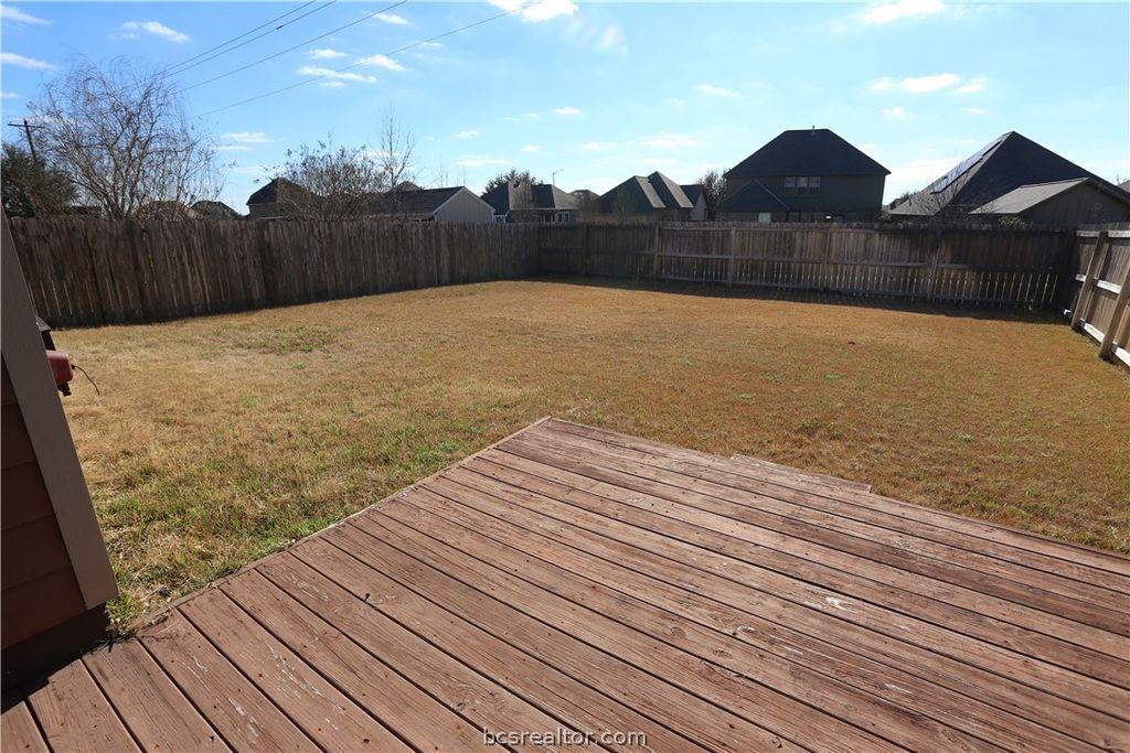 Discover your new home, where comfort meets style in this delightful 3-bedroom, 2-bath home. Thoughtfully designed to cater to a modern lifestyle, this home offers a balance of functionality and comfort. Step inside to be greeted by a cozy and inviting interior that exudes warmth and charm. The open-concept living space is perfect for both entertaining and everyday relaxation, featuring a bright living area that seamlessly flows into the dining space and kitchen. The kitchen is well-appointed with sleek countertops, ample cabinetry, and modern appliances, making meal preparation a joyous experience. Each bedroom offers a tranquil retreat. The primary suite pampers you with a private bath and walk-in closet, while the additional bedrooms and bath provide comfortable accommodations for guests. Stepping outside, you will enjoy the covered patio for morning coffee or evening relaxation, while taking advantage of the spacious yard. Nestled in a serene neighborhood in Bryan, this property offers easy access to local amenities, schools, and parks. Whether you are starting a new chapter or seeking a peaceful retreat, this home offers comfort and convenience. Don't miss the opportunity to make this exceptional property your own.
