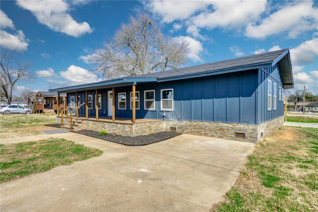 Beautifully renovated 4-bedroom, 2-bath home originally built in the 1950s and relocated in the 1970s, now extensively updated with modern systems and thoughtful design. Approximately 1,800 SF featuring all new electrical throughout, including new breaker box and breakers, all new PEX plumbing, and a new Carrier Performance 2-ton, 2-stage HVAC system. Spray foam insulation in attic and underneath the home enhances energy efficiency. New roof was installed in February 2026. The former garage has been professionally converted into a private primary suite with full bath, creating a functional split-bedroom layout. Interior highlights include original hardwood accents on the island and fireplace, Stainmaster luxury vinyl plank flooring throughout, a wide hallway, large walk-in pantry, pot filler, spacious utility area, hall storage, and new ceiling fans in each room. Exterior improvements include Hardi Plank siding, ledger stone skirting, new front and back decking, dusk-to-dawn exterior lighting, new carport addition, and storage shed. Extensive system upgrades combined with character and modern efficiency make this home truly move-in ready. The location is prime as well very close to Franklin elementary school for your convenience.
