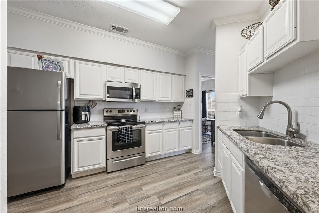 Exceptional opportunity to own a beautifully maintained 3 bedroom, 2 bathroom single story condo in the desirable Deacon Condos community! This well-cared-for unit features numerous updates throughout, including painted cabinetry, granite countertops throughout, stainless steel appliances, and stylish vinyl plank flooring installed during a 2020 remodel. The refrigerator, washer, and dryer will convey, making this a truly turnkey property. The property is currently leased through May 2026, offering immediate income potential. Enjoy designated parking and a prime location on the Texas A&M bus route, just minutes from Texas A&M University. Conveniently located near H-E-B, Dutch Bros, Chick-fil-A, and abundant shopping and dining options. This condo checks all the boxes!