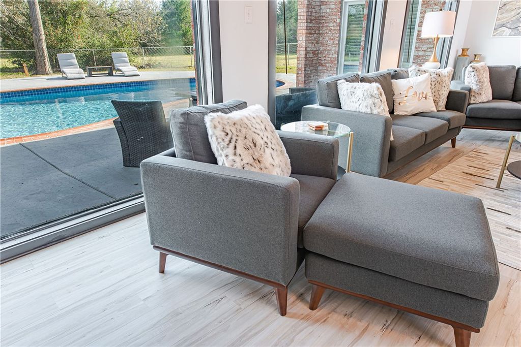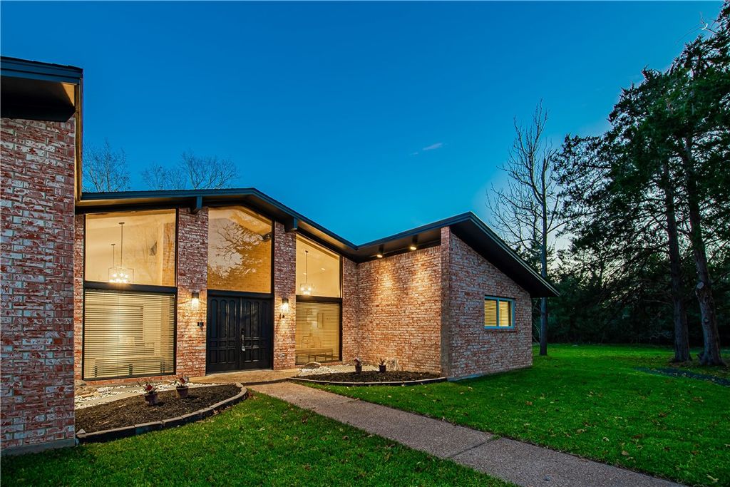 Charming 4.86-acre retreat just minutes from University Drive and Texas A&M University in the established Enchanted Oaks neighborhood "” pet-friendly. This 2,000+ sq ft home features 1970s modern flair on the exterior and an open-concept interior ideal for entertaining: soaring ceilings, a dramatic brick wood-burning fireplace, and a wall of picture windows framing the oversized pool, hot tub, and wooded acreage. Outdoor living excels with a large pool deck for gatherings, dedicated dining and seating areas, a fire pit, and private, partially wooded land. Interior highlights include a spacious master suite, oversized bedrooms, walk-in showers, laundry room, and a detached 2-car garage. Convenient to Bryan/College Station amenities and Texas A&M "” a special property with character and potential.