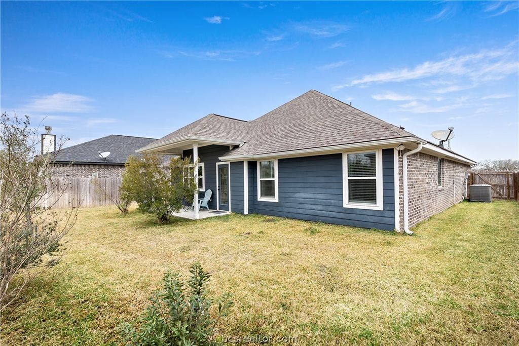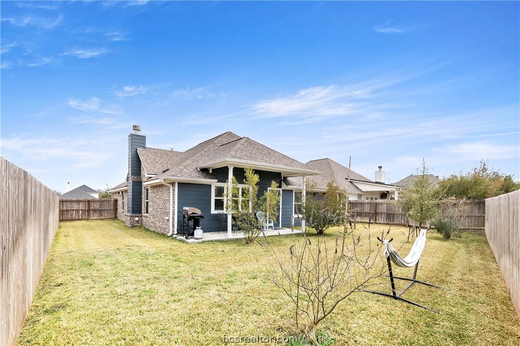 Welcome to 3920 Brownway Court in College Station"”a beautifully maintained 2022 single-story home by Avonley Homes, located on a quiet cul-de-sac in Brewster Pointe. This 3-bedroom, 2-bath residence offers 2,020 square feet with a desirable split-bedroom layout, dedicated study / flex mudroom space, and formal dining area. The spacious kitchen is the heart of the home, featuring granite countertops, a large island with eat-in bar, gas range, built-in appliances, pantry, and windows that fill the space with natural light. The primary suite provides a relaxing retreat with a generously sized shower that includes a built-in seat. Enjoy outdoor living on the covered patio overlooking a private backyard with growing trees that will provide increasing shade and privacy. With no neighbors directly in front or behind, the setting offers rare peace and openness. Additional highlights include raised ceilings, gas log fireplace, sprinkler system, wood privacy fence, and community amenities including a pool. Move-in ready comfort, thoughtful design, and an exceptional location (zoned to College Station High School) combine to make this home a standout opportunity.