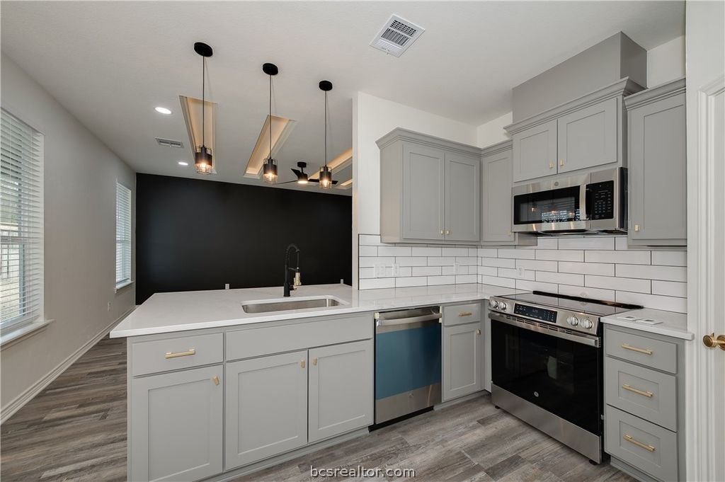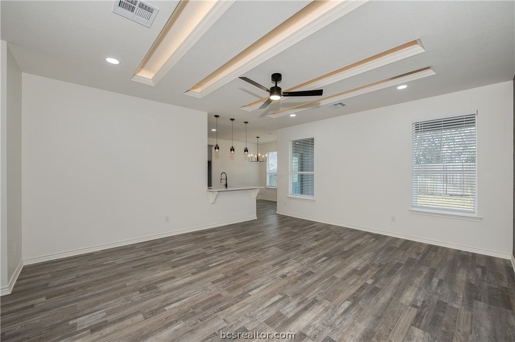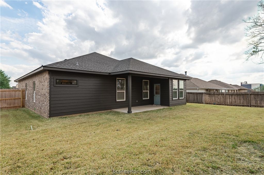 New Construction in Dove Crossing ? This beautifully crafted 3-bedroom, 2-bath residence offers a thoughtfully designed single-story split floor plan paired with sophisticated modern finishes. Ideally located with convenient access to Highway 6, the home is just minutes from shopping, dining, and medical facilities, and within an easy drive to Anderson, Montgomery, Bryan/College Station, and Houston. The interior welcomes you with a spacious, light-filled living area featuring recessed lighting and luxury vinyl plank flooring throughout the main living spaces. The kitchen serves as the heart of the home, appointed with quartz countertops, stainless steel appliances, a walk-in pantry, and decorative lighting, creating both functionality and style for everyday living and entertaining. The private primary suite provides a relaxing retreat, window treatments, pop up ceilings with cove lighting, complete with a spa-inspired bath offering double vanities, quartz surfaces, and a beautifully tiled walk-in shower, along with a generous walk-in closet. Additional enhancements include ceiling fans with light kits, linen cabinetry, an irrigation system, overhead garage door opener, and a finished epoxy garage floor. Outdoor living is equally inviting, with a large covered patio overlooking a fully fenced backyard"”perfect for gatherings or quiet evenings at home. Blending comfort, thoughtful design, and quality finishes, this home is ready to welcome its new owners.