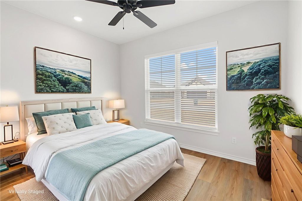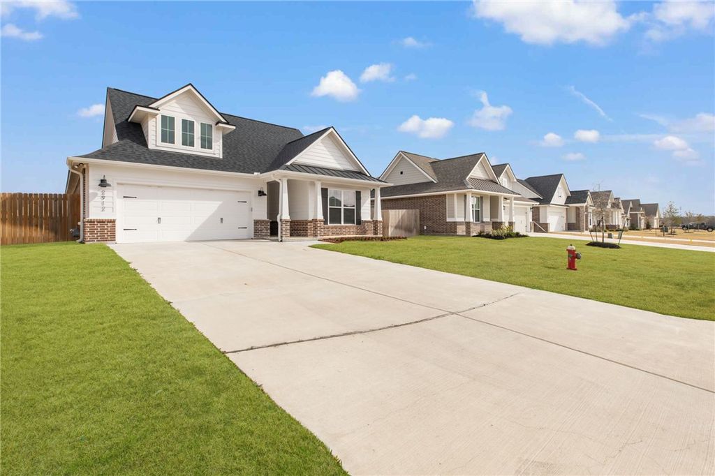Built in 2022 and lived in by just one person, this one-owner home feels practically new. Located in Austin's Colony in Bryan, TX, 2912 Captain Ct offers 4 bedrooms, 3 full baths, 1,897 sq ft, and a three-way split floorplan that gives everyone breathing room"”ideal when you want a separate guest room, home office, or hobby space without it being right on top of the other bedrooms. The open living area is filled with natural light thanks to walls of windows, and the entry makes a great first impression with the cedar box-beam accent and a Nest thermostat for smart comfort. The kitchen is open to the living and dining spaces and checks the boxes buyers search for: granite countertops, stainless steel appliances, gas range, a large island, and a walk-in pantry. The primary suite is tucked away for privacy with dual sinks, walk-in shower, soaker tub, and a spacious 12x6 walk-in closet. Outside, enjoy a covered patio, sprinkler system, and a fenced backyard"”easy, low-maintenance outdoor living"”plus the neighborhood park and amenities that make Austin's Colony a favorite.