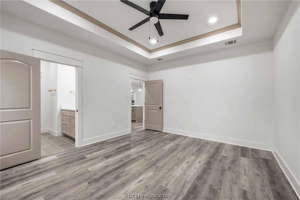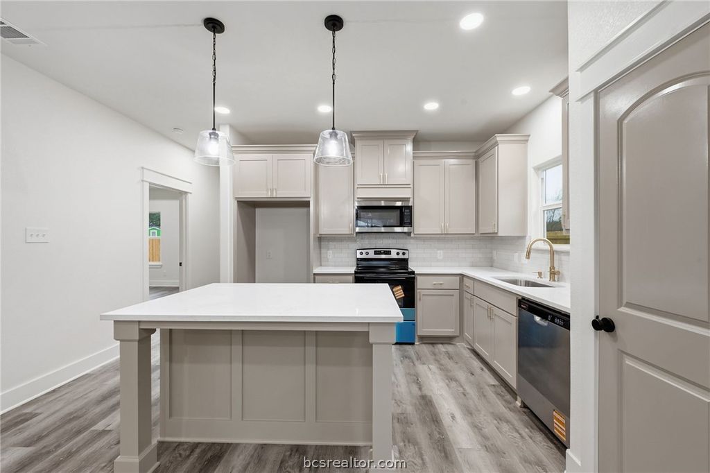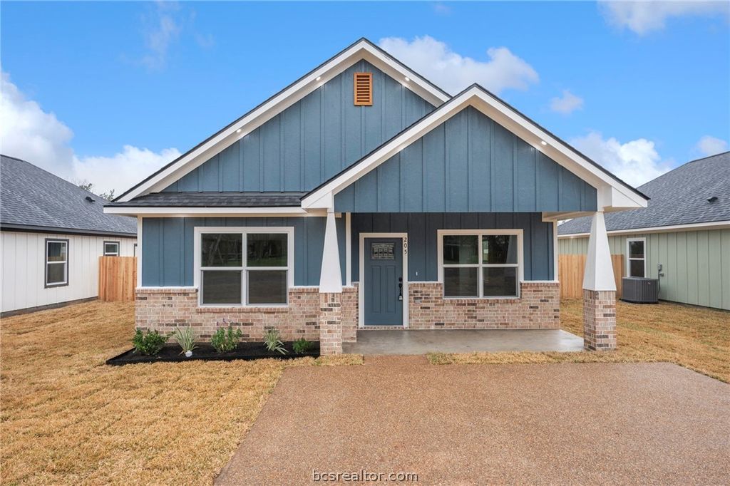 Welcome to this NEW CONSTRUCTION conveniently located 3 minutes from Downtown Bryan, 8 min from Blinn College, 13 min to A&M. This 3 bedroom, 2 bathroom home features craftsmanship and gorgeous details! Open floor plan with raised ceilings, custom cabinetry, recessed lighting, quartz countertops, under mount sinks, and much more! Durable vinyl plank wood flooring in main areas and bedrooms, tile flooring in bathrooms. NO CARPET! Kitchen features gorgeous oversized kitchen island, pendant lighting, stainless appliances, beautiful brass finishes and separate pantry. The master bedroom features a spacious walk-in closet and walk in shower with tile surround and glass shower doors. Enjoy the outdoors in your spacious back yard with wooden privacy fence. Double pane Low E insulated windows, 30 year 3 tab composition shingle roof, and 3 ton heat pump HVAC system. NO HOA! Make your appointment today!