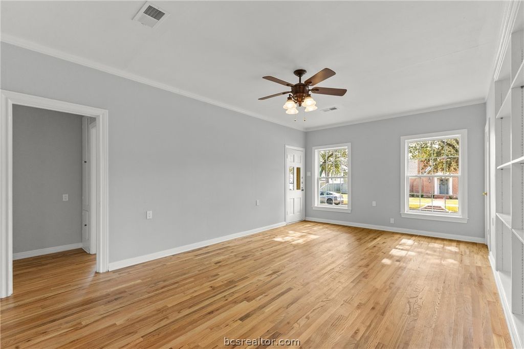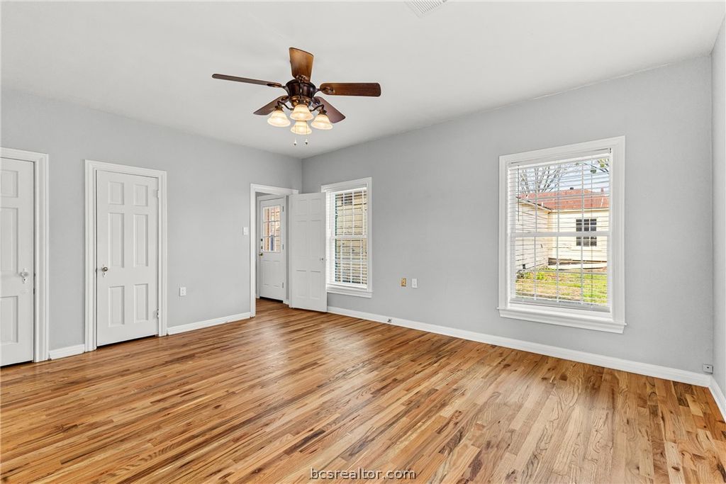 710 E 32nd St is a downtown-charming cottage on one of Bryan's most picturesque streets"”lined with canopy trees, well-kept lawns, and classic historic homes. Just minutes from the restaurants, shops, and small-town vibe of the thriving Downtown Bryan area. Completely renovated in 2023 while keeping the character intact. Step into an oversized living room with built-in shelving, then through original pocket doors to a bright dining room with more built-ins and large windows"”made even better by the new vinyl windows added throughout in 2023. The kitchen is open to the dining area for an open-concept feel that still fits the home's historic charm, further accented by the new oak hardwood floors running throughout the home. The kitchen features stained wood cabinets, granite countertops, and gas appliances. The bathroom was fully updated with a new tub, large-format tile surround, pedestal vanity, new toilet, fixtures, and flooring. Huge bonus: a rare garage/shop setup this close to downtown"”one-car garage with automatic door plus an attached 2-car garage-sized shop with classic sliding barn doors, perfect for a workshop, gym, or storage. Out back is an 1 bed /1 bath ADU footprint (approx 480 sq ft per CAD), mostly gutted and ready for your vision"”guest house, office, studio, man cave/she-shed. Main house is 1,221 sq ft per CAD. Metal roof over garage/ADU is older and needs attention; main house roof is newer (2020).