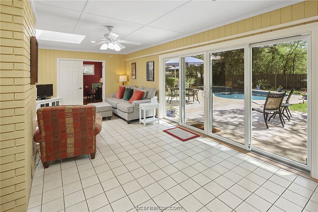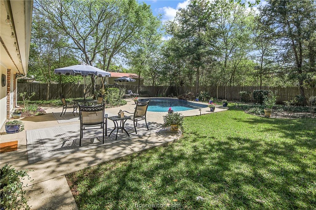 This is the one you've been waiting for ... a rare gem with space, style, and a backyard that is your private retreat. Custom home on nearly ½ acre with a stunning in-ground pool, located on a quiet cul-de-sac in the heart of College Station - just four miles to Texas A&M and no HOA. A comprehensive 2009 remodel brought thoughtful updates throughout, including custom solid oak cabinetry in the kitchen, bathrooms, and laundry, granite countertops, high-end appliances, bamboo wood floors in the main living areas, and updated HVAC. Andersen windows throughout the home are paired with either plantation shutters or Hunter Douglas Silhouette shades for a polished, timeless look. Major exterior updates include a 2022 roof, gutters, and hail-resistant skylights. Enclosed porch, part of the original custom home design, offers the flexibility of a second living area, and an extra space off of the primary bedroom that can be a home office, nursery, exercise room, etc. In 2025, the owners elevated the indoor-outdoor connection with a four-panel Renewal by Andersen gliding doors and retractable screens - framing picture-perfect views of the pool, manicured yard, and mature trees. Just a short walk to Brothers Pond Park and zoned to highly rated College Station ISD schools. Ask for the list of features and updates! Homes like this don't come along often. Schedule your showing today before someone else falls in love with it!