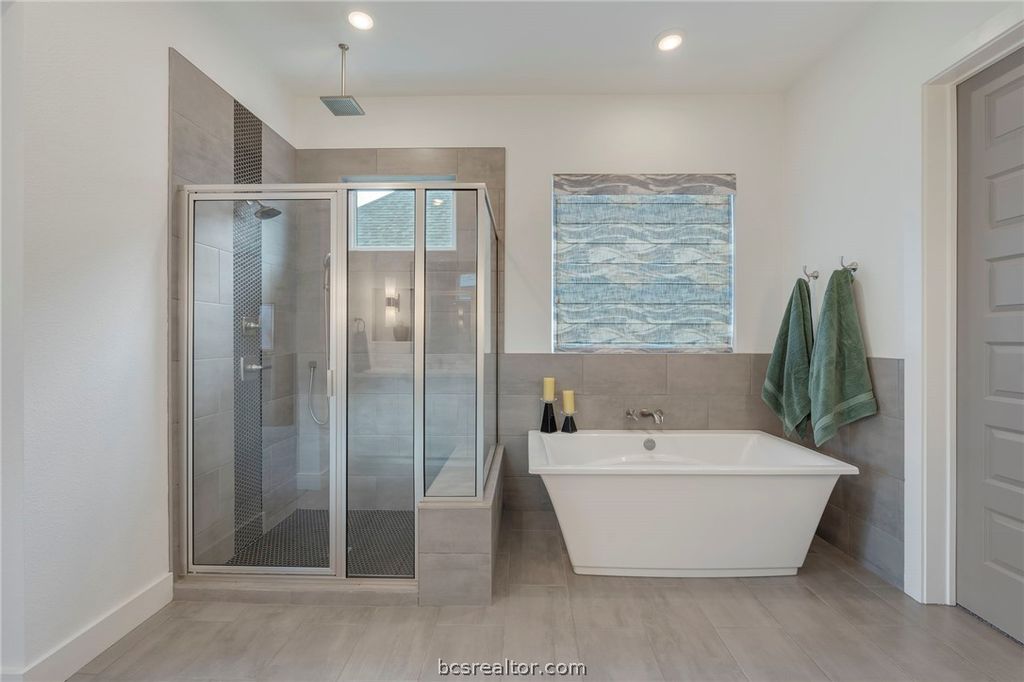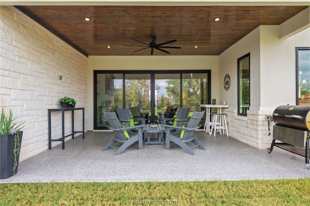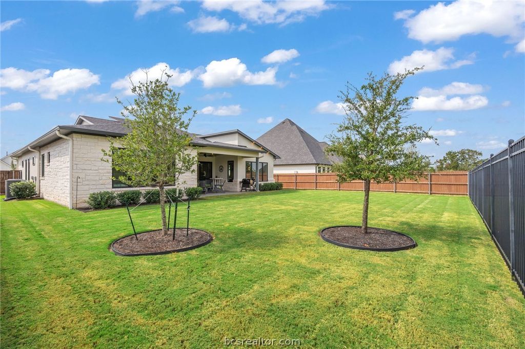 Welcome to 4706 Pearl River located in Greens Prairie Reserve, one of South College Station's premier developments. This immaculate single owner residence blends design & functionality creating the perfect place for a modern lifestyle. Sitting on an over-sized cul-de-sac lot, this home backs up to greenbelt area with no direct back neighbor. Offering great curb appeal, this well-designed floor plan offers 4 bedrooms, 3 full baths, 1 half bath, an open family room & a spacious dedicated dining space. The living area features a raised beamed ceiling & a wall of windows that enhances the sense of space & connection to the outdoors. The spacious kitchen boasts a large granite topped waterfall island, ample cabinet space, quality stainless steel appliances & gas cooktop. The primary bedroom is a true retreat, featuring a large shower with soothing rainfall showerhead, dual vanities, soaking tub & a large walk-in closet. The laundry room offers a sink, additional storage space & adjoins to the convenient mudroom. The covered patio is an extension of the interior space offering views of the park-like backyard with room for a pool. Additional owner upgrades custom window treatment, stampede coated garage and patio, front exterior smart light fixtures & more. For added peace of mind a security system was installed by Audio Video. Residents enjoy multiple amenities including nature trails, stocked ponds, fiber internet & an on-site lifestyle coordinator.