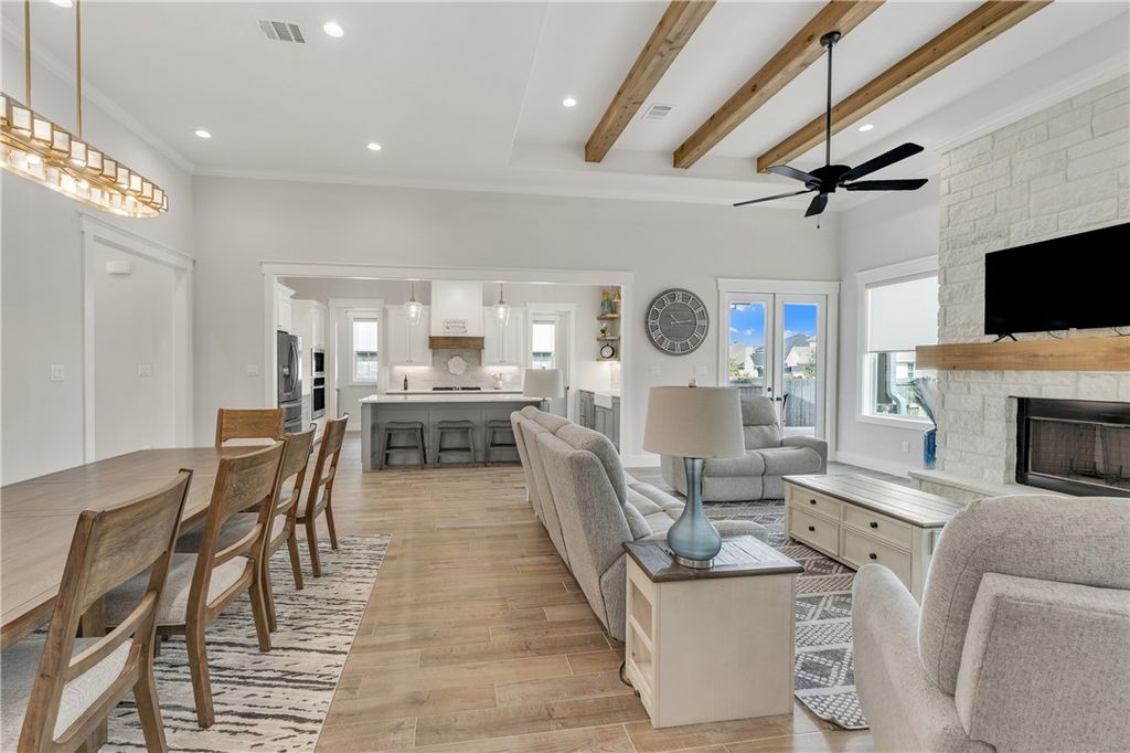Take a look at this beautiful, like-new 2 story home in Mission Ranch, featuring 4 bedrooms and 3 full baths. Bright, open layout with a stunning rock fireplace, private study with French doors, and versatile bonus room. Enjoy the large covered porch with privacy landscaping, plus a garage wit upgraded floor coating and added storage shed. It's located in an amenity-rich community with a resort-style pool, pickleball courts, walking trails, clubhouse, fitness center, lake and fiber internet-all just minutes from schools, shopping and Texas A&M.