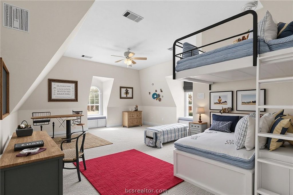 Welcome to this charming 4-5 bedroom, 3.5-bath home tucked away on a quiet cul-de-sac in the highly sought-after Emerald Forest neighborhood of central College Station. Known for its tree-lined streets, community pool, tennis courts, and family-friendly atmosphere, this is a location buyers love. From the inviting front porch to the spacious backyard, this well-maintained home offers warmth, flexibility, and room to grow. The generous layout features multiple living and dining areas, wonderful for entertaining, working from home, or creating spaces that fit your lifestyle. The family room opens to the kitchen, a formal living space that could easily be made into a study, and a standout screened-in porch complete with a built-in grill, sink, ceiling fans, and space for dining and relaxing "” the fitting extension of the home for gatherings or peaceful evenings overlooking the backyard. The downstairs primary suite provides privacy and comfort, while upstairs offers four additional bedrooms that share a jack and jill style bathroom, with one of the bedrooms so large it could be a spacious, versatile bonus room ideal as a fifth bedroom, media room, play room, or hobby space - the opportunities are endless. With flexible living areas inside and out, this Emerald Forest gem is a rare opportunity in one of central College Station's most desirable neighborhoods. Schedule your showing today!