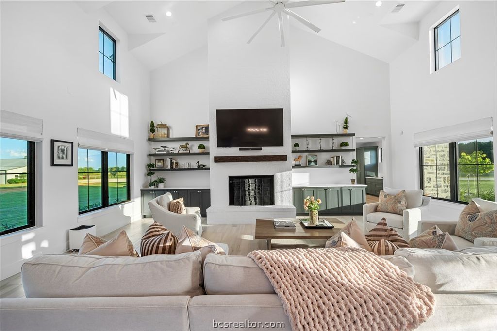 Refined 19-acre equestrian estate blending architectural sophistication with premier horse facilities. The 5,436 SF custom residence showcases tile flooring throughout, a dual-island chef's kitchen with Sub-Zero and Wolf appliances, butler's pantry, study, media room, and a first-floor primary suite with dual private baths and dual-level utility rooms. Equestrian amenities include a regulation dressage arena with professionally engineered decomposed limestone and Firestone rubber footing, arena irrigation, irrigated and cross-fenced pastures, and a fully insulated 6-stall barn with 14x14 stalls, wash bays, geo-grid turnout runs, and a climate-controlled tack and feed room with laundry and bath. A 1,200 SF insulated shop, 400-amp service, owned 1,000-gallon propane tank, 60 kW whole-property generator, private well, engineered drainage to a powered pond, extensive irrigation, fiber at the road, and no HOA complete the offering. Defined by intention and enduring quality in every detail.