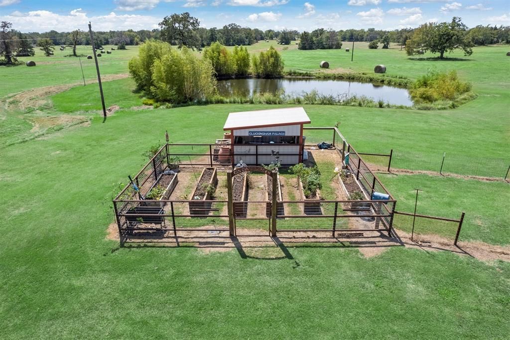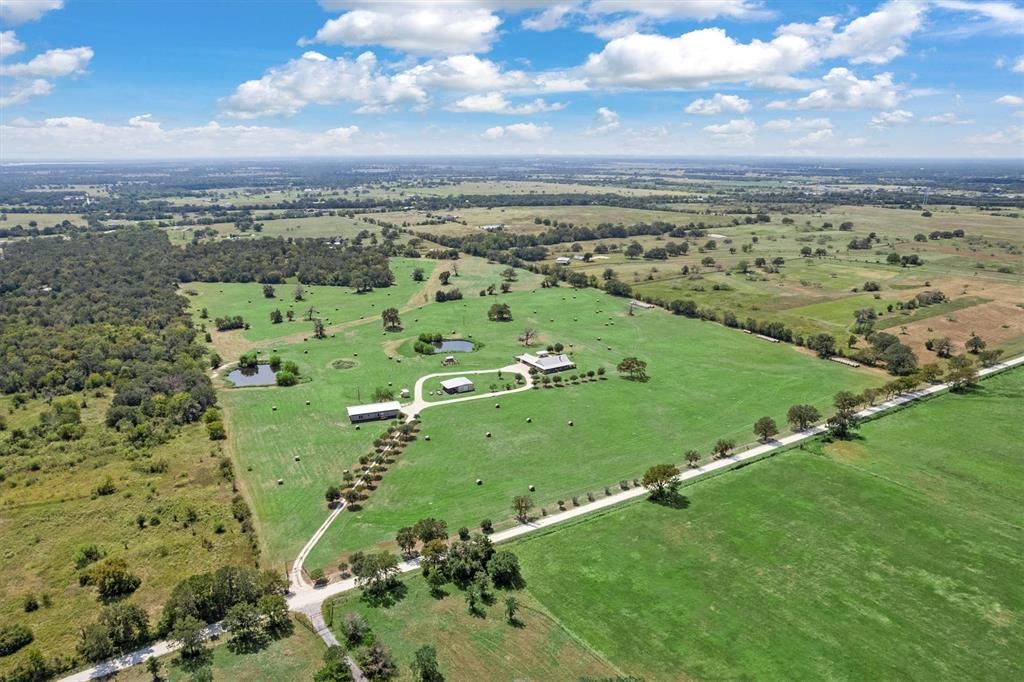 Welcome to this exceptional 53-acre ranch, where country charm meets modern amenities. Great for multigenerational living or income potential, the property includes two homes: the main house offers 2,013 sqft with 3 bedrooms and 2 bathrooms, while the second home provides an additional 1,200 sqft with 3 bedrooms and 2 bathrooms. Both homes are thoughtfully designed for comfort, with the main home featuring wraparound porches, vaulted ceilings with wood beams, and a stunning floor-to-ceiling fireplace. The backyard is built for entertaining and relaxing with an in-ground pool, covered pavilion, and firepit area. Enjoy sustainable living with a chicken coop, raised garden beds, and dog kennels with a run. A large barn/workshop with electricity provides ample space for hobbies, storage, or work, and the property also includes an RV hookup, water well, and concrete driveway. Three serene ponds and a hay pasture enhance the beauty and usability of the land, whether for livestock, recreation, or just soaking in the views. This property carries an agricultural tax exemption, keeping property taxes low while offering endless possibilities for farm, ranch, or leisure use. Whether you're looking for privacy, room to grow, or a true Texas ranch lifestyle, this rare find has it all.