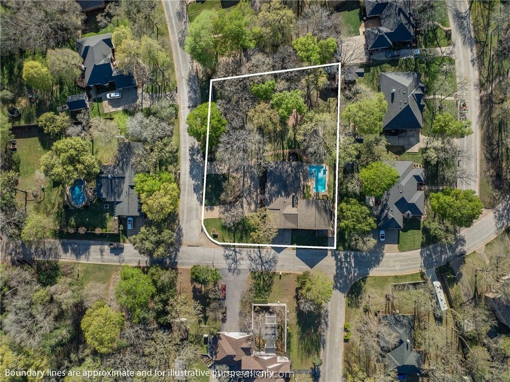 Welcome to country club living with space, privacy, and room to truly spread out. Situated on two combined lots in Copperas Hollow Country Club, this 6-bedroom, 4-bath home offers an expansive setting within walking distance to the 9-hole Copperas Hollow golf course. Mature trees, established landscaping, and a circle drive offer curb appeal and plenty of parking for family and guests. Inside, the layout features multiple living areas, including a main living room, spacious family room, and dedicated study well-suited for everyday living and larger gatherings. The centrally located kitchen includes double ovens, gas range, eat-in bar, and dining area, plus an oversized utility and pantry space with sink, ice maker, and additional refrigeration. The home has been updated with energy-efficient Andersen windows. The main-level primary suite features a sitting area, backyard access, double vanities, two walk-in closets, and an oversized shower. A split-bedroom layout adds privacy, while the upstairs includes additional bedrooms, a full bath, and flexible living space suited for larger households or multi-generational living. This well-maintained home offers an opportunity to update and make it your own. Enjoy the backyard with pool, hot tub, covered patio, and outdoor kitchen pavilion with fireplace. A sport court for basketball or pickleball, workshop, and storage complete the property.
