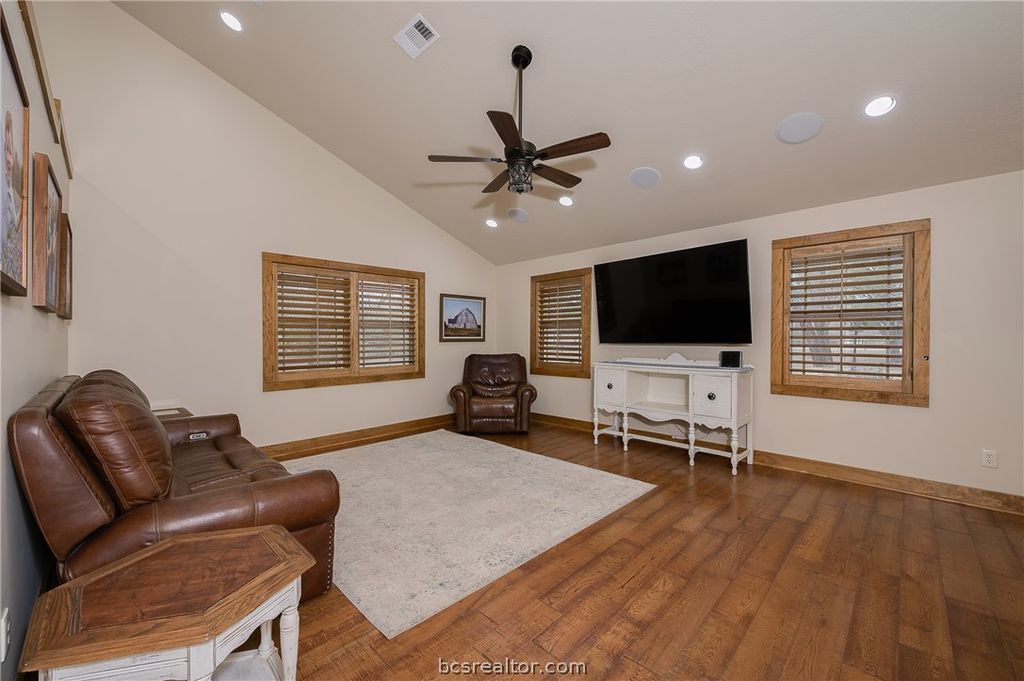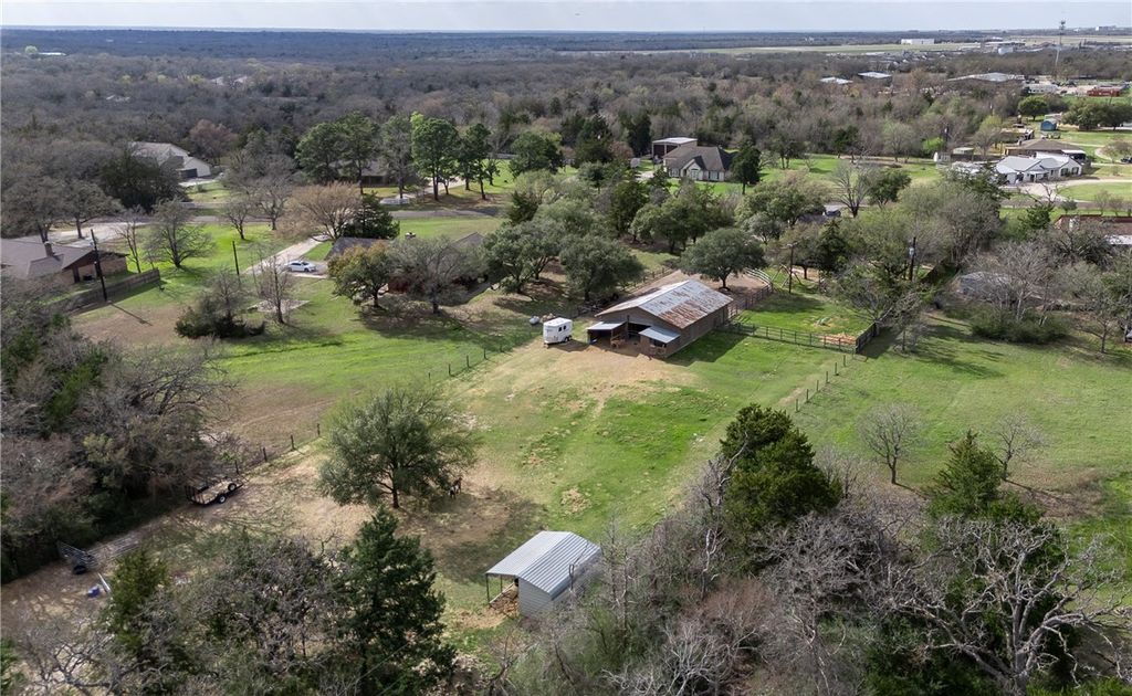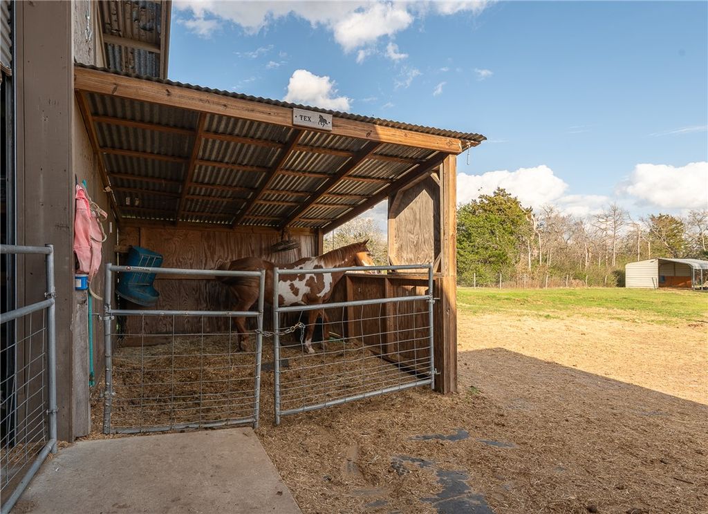 Are you looking for a horse property close to Texas A&M University? This gem is located in Quail Run Estates on 1.79 acres and is completely fenced and cross fenced! This 3 bedroom / 2.5 bath + bonus / second living room home is the perfect ranchette property for those looking to live the country life, but close to city amenities. This property has a 35 x 45 shop / barn that is fully equipped with power, hot & cold water, internet, a dog wash, and hay / tack room. With 3 large roll up doors, this workshop / barn is spacious and is great for many uses. There are also 3 loafing sheds in the pasture. Perfect for horses or small livestock animals for 4H or FFA projects. Enjoy the oversized screened-in back porch that has a peaceful view of the backyard and pasture. This home has been completely updated. Brand new roof and aerobic septic. Beautiful rustic kitchen with large island. No HOA! Call today to set up your showing!