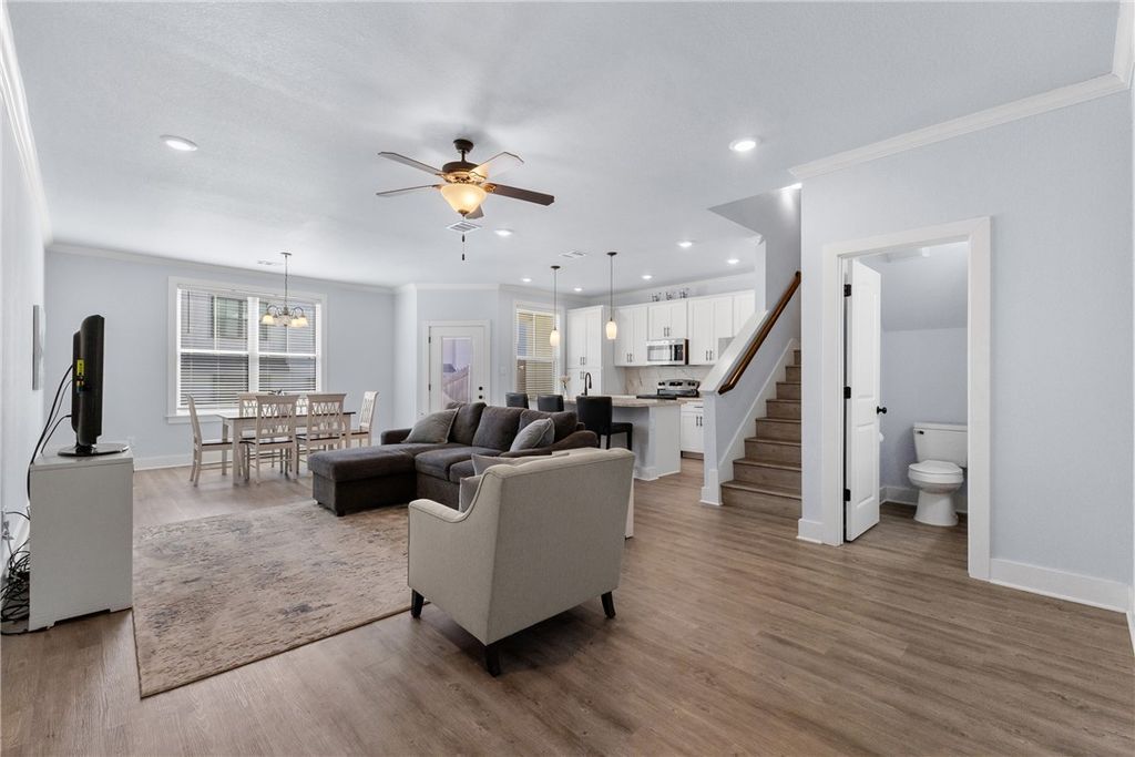 Opportunity awaits, welcome to your Aggie students next home! Spacious, contemporary 4-bedroom, 4.5-bath townhome with a 2-car garage in the ACE Townhome subdivision in College Station. The open-concept layout features statement lighting, high ceilings with extensive crown molding, and vinyl plank flooring throughout, including the staircases. The kitchen offers granite countertops, a large granite island, stainless steel appliances, and attractive cabinetry. One of the few units to have the extended driveway for spacious parking. Each bedroom includes a private en-suite bath and a walk-in closet, plus ceiling fans in every bedroom and the living area. Additional highlights include a 14 SEER HVAC system with dual-zone controls, washer and dryer connections, and a keypad-entry garage with remote opener. Enjoy your own private, fenced backyard, and low-maintenance living with HOA-covered common area maintenance, lawn care, and sprinkler system.