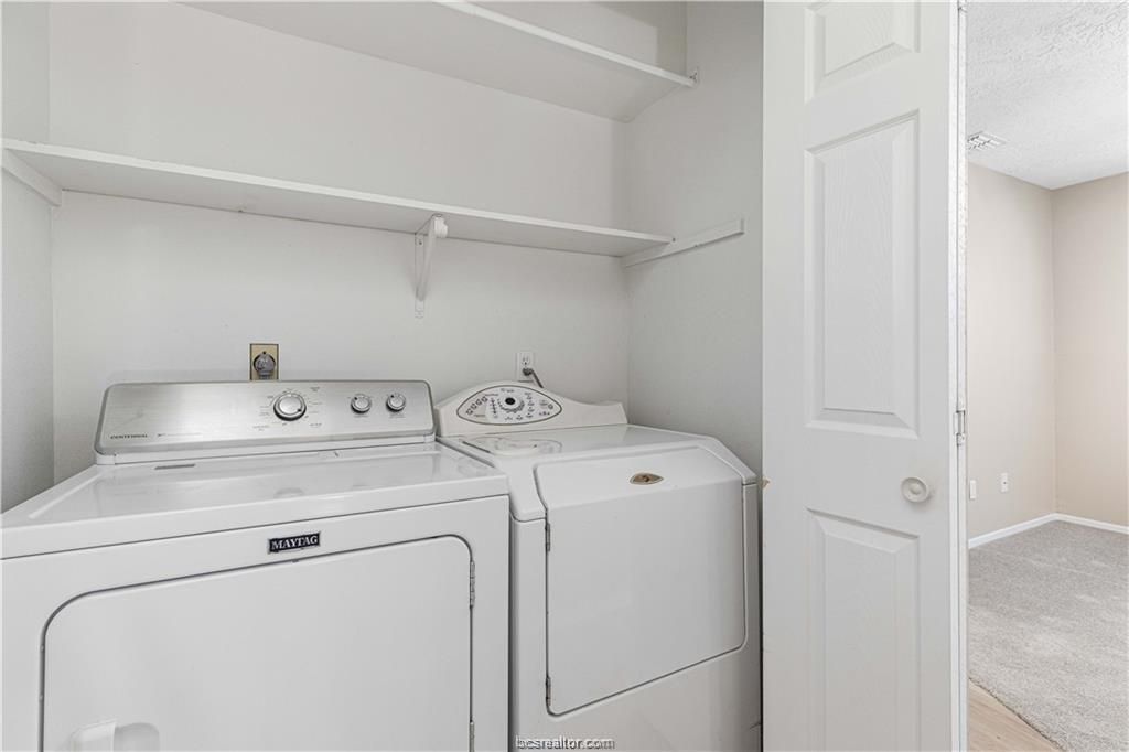 Discover this charming one-bedroom, one-and-a-half-bath condo, ideally situated just a short distance from Texas A&M University. Perfectly located in the serene Woodbrook community surrounded by lush mature trees, this condo offers a tranquil retreat on the bus route, making commuting to campus and local attractions effortless. Enjoy the convenience of having the community pool directly across the street, offering easy access to relaxation and recreation. The condo features a comfortable living space with a wood burning fireplace, a well-appointed bedroom with a full bathroom upstairs for privacy, and an additional half bath downstairs for guests. The modern kitchen features granite countertops, a stylish backsplash, and durable tile floors, creating a perfect space for cooking and entertaining. Step outside to your private back patio perfect for entertaining or unwinding. Conveniently located on the TAMU bus route, commuting and accessing local amenities is a breeze. This condo is a perfect choice for those seeking a cozy home with excellent access to amenities and easy access to campus. Call today for a private tour. Currently leased at 1,100.00 until 10/31/2026.