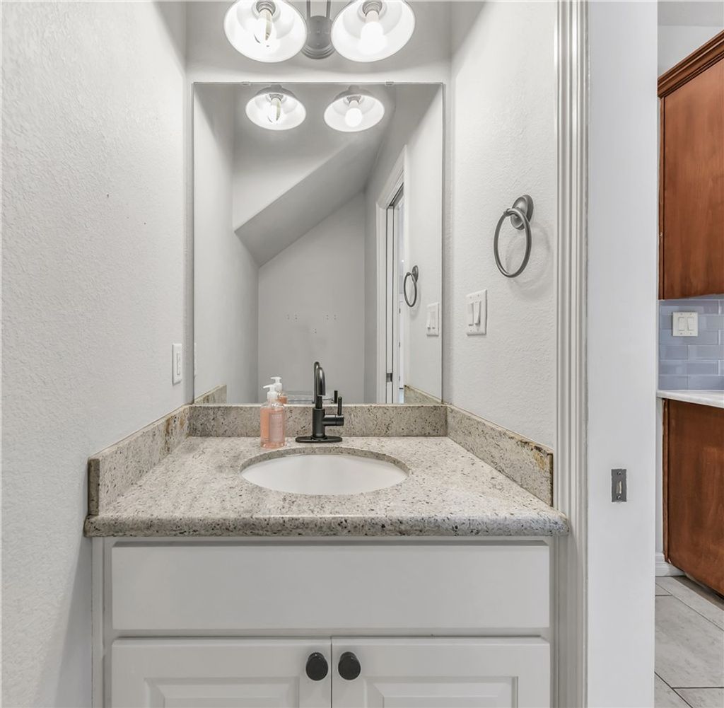 LOW MAINTENANCE 3-bedroom, 2.5-bathroom residence, perfectly situated in the heart of south College Station. With relaxed design elements and a generous floor plan, this property is crafted for both comfort and style. Step inside to experience the warmth of an open living space accentuated by natural light flowing through expansive windows. The gourmet kitchen is a chef's delight, featuring granite countertops, glass tiled backsplash, stainless appliances, and a convenient breakfast bar, ideal for casual dining and entertaining. A dedicated dining area complements the kitchen space, offering a formal setting for more intimate meals. The downstairs primary suite is a private retreat, complete with a spacious walk-in closet and an en-suite bath featuring a soaking tub and a separate shower. Two upstairs bedrooms provide ample space for guests or home office needs. Outside, the property shines with small backyard, perfect for relaxation or outdoor gatherings. The covered patio offers a shady spot to savor your morning coffee or host weekend barbecues. An HOA maintained front yard and flower beds add to the easy maintenance of this home. Completing this package is a sizable 2 car garage, ensuring secure parking. In a location that combines convenience with tranquility, this property offers easy access to local amenities and top-rated schools making it an ideal choice for discerning buyers. Don't miss the opportunity to own this personal retreat.