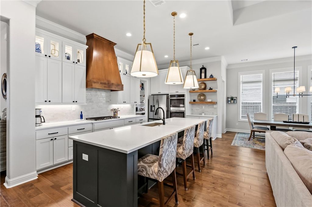 Welcome to this exceptional Hall Home in desirable Greens Prairie Reserve. Featuring one of Hall's most popular floorplans, this thoughtfully designed home blends modern living with the perfect balance of comfort and functionality. The main floor flows effortlessly through an open-concept living, dining, and kitchen area"”bright, inviting, and designed for both everyday living and entertaining. The chef's kitchen features GE Profile appliances, double ovens, abundant storage, and a generous center island that naturally becomes the heart of the home. A sophisticated wet bar adds both style and practicality, creating an ideal setting for hosting with ease. Upstairs, the expansive bonus/media room is your blank canvas"”perfect for game days and movie nights, yet versatile enough to adapt to your lifestyle. Double sliders in the living room open to a spacious covered patio and outdoor kitchen enhanced with automatic roll-down screens, offering added privacy while helping regulate temperature and providing protection from the sun"”allowing you to enjoy outdoor living year-round. The backyard delivers a true luxury experience with a resort-style in-ground pool and heated spa with LED lighting, creating the perfect setting for relaxed evenings or upscale entertaining.