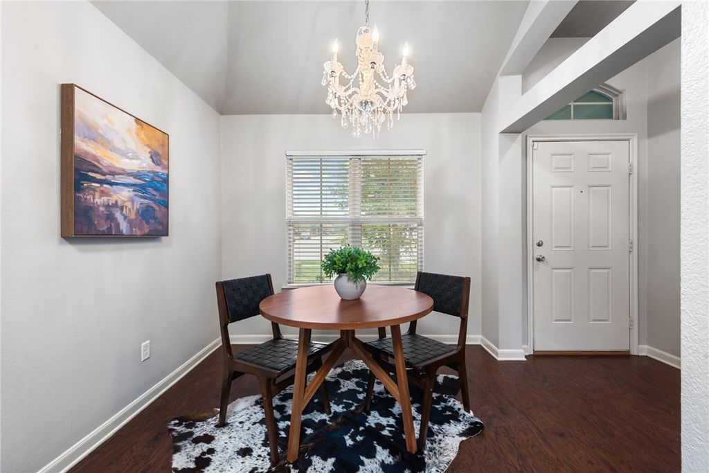 Situated in South College Station's Creek Meadows community, this 3-bedroom, 2-bath home with an office nook offers a layout designed for both everyday living and easy entertaining. Large windows fill the home with natural light, while details like arched openings and raised ceilings add character throughout the main living spaces. Just off the front entry, the dining area connects seamlessly to the kitchen and main hallway, creating an inviting flow that works well for gatherings or quiet dinners at home. The kitchen features granite countertops, a gas range, pantry storage, and plenty of prep space. Faux wood vinyl plank flooring adds durability and style throughout the home. The spacious primary suite provides a private retreat with an ensuite bath that includes dual sinks, a separate garden tub, walk-in shower, and a generous walk-in closet. Outside, enjoy the backyard setting designed for relaxing and spending time outdoors. A pergola-covered patio creates a shaded spot for grilling, outdoor dining, or unwinding in the evening. Residents enjoy access to community pools, parks, and walking trails, with convenient proximity to Greens Prairie Elementary, Pecan Trail Intermediate, and Texas A&M University.
