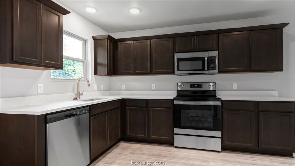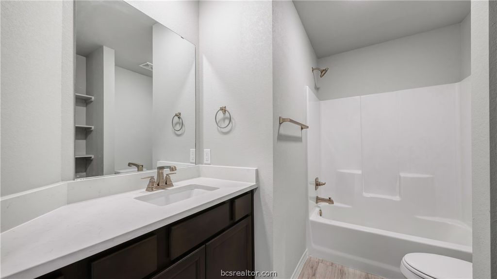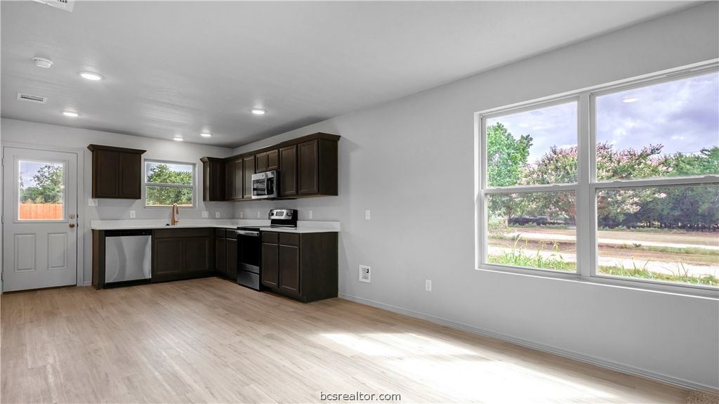 This home is located in the new Manor Point subdivision in Bryan. Featuring three bedrooms and two bathrooms, this thoughtfully designed one-story home offers an open-concept layout making living and entertaining easy. The spacious living room flows seamlessly into the gorgeous kitchen and dining area, creating a bright and inviting space at the heart of the home. The primary suite is generously sized and includes a beautiful en-suite bathroom and a large walk-in closet. You'll also appreciate the upscale finishes throughout, including granite countertops in the kitchen and bathrooms, and durable LVP flooring in the kitchen, bathrooms, and utility room. Don't miss your opportunity to own this beautiful new home in Manor Point! **Photos are sample photos of similar plan. Colors and features might vary**