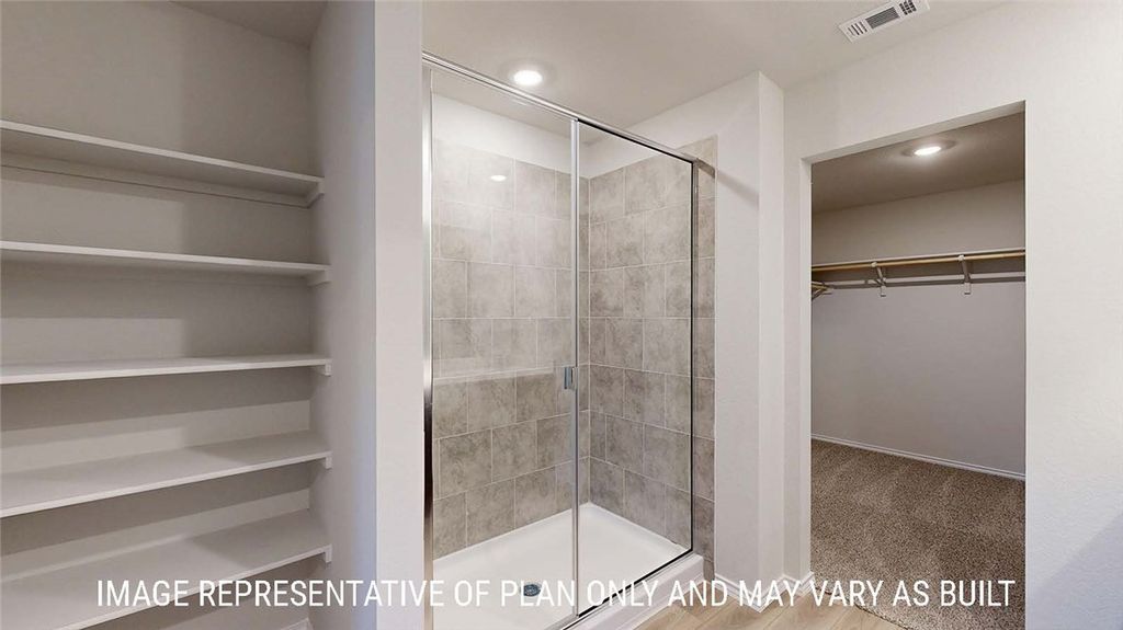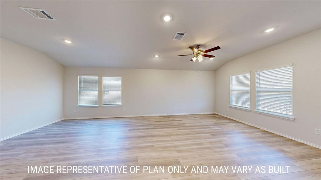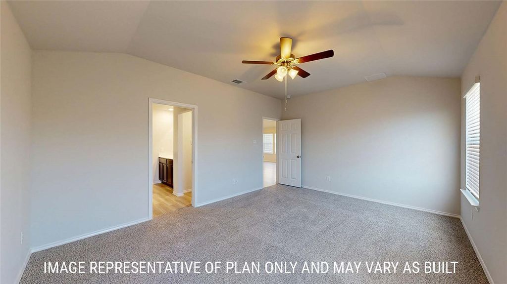 Check out the Caden, a floorplan at our Wilkins Valley community in Brenham, Texas. With 3 bedrooms, 2 bathrooms, and approximate 1,595 sq. ft., this single-story home is designed to fit your needs with a 2-car garage gives you space for storage and vehicles. When you first enter the home, you're greeted with both secondary bedrooms and easy access to the secondary bathroom. Each bedroom is complete with closets, windows, and carpeted flooring. Continuing through the home, you'll find the open-concept kitchen, dining, and living areas. This kitchen boasts easy shaker-style cabinetry, quarts countertops, and stainless-steel appliances. You'll also have a functional kitchen island, along with a spacious shelved pantry. We've also placed both the utility room and extra storage between the garage and kitchen. Through the living room, you'll find the primary bedroom with an attached bathroom and roomy walk-in closet. These finishes include quarts vanity tops and ceramic tile shower surround. Plus, linen shelving for even more storage. Don't forget to enjoy the outdoor air with the covered patio and fenced backyard. This plan is a gem!