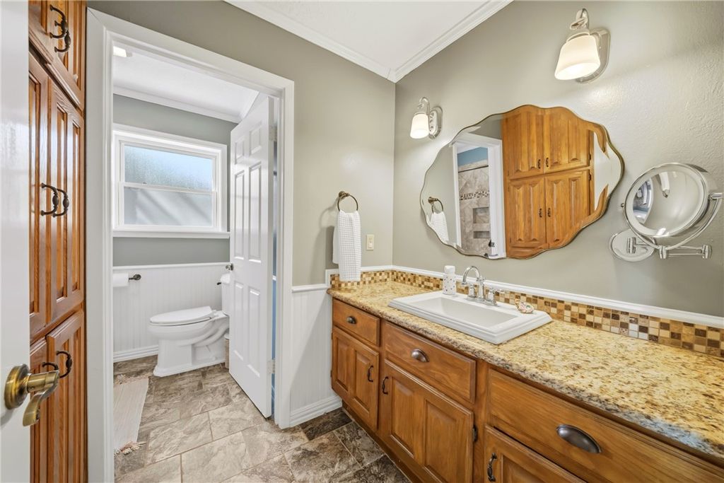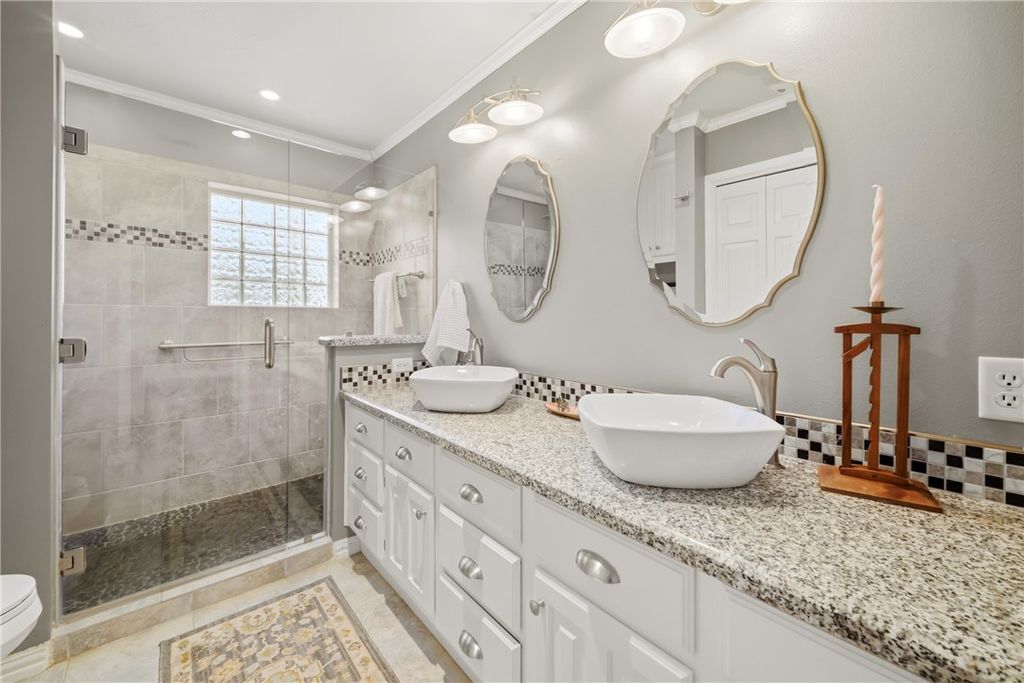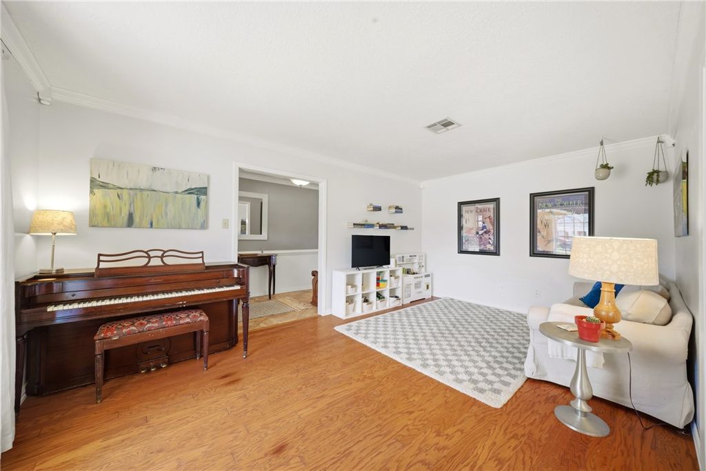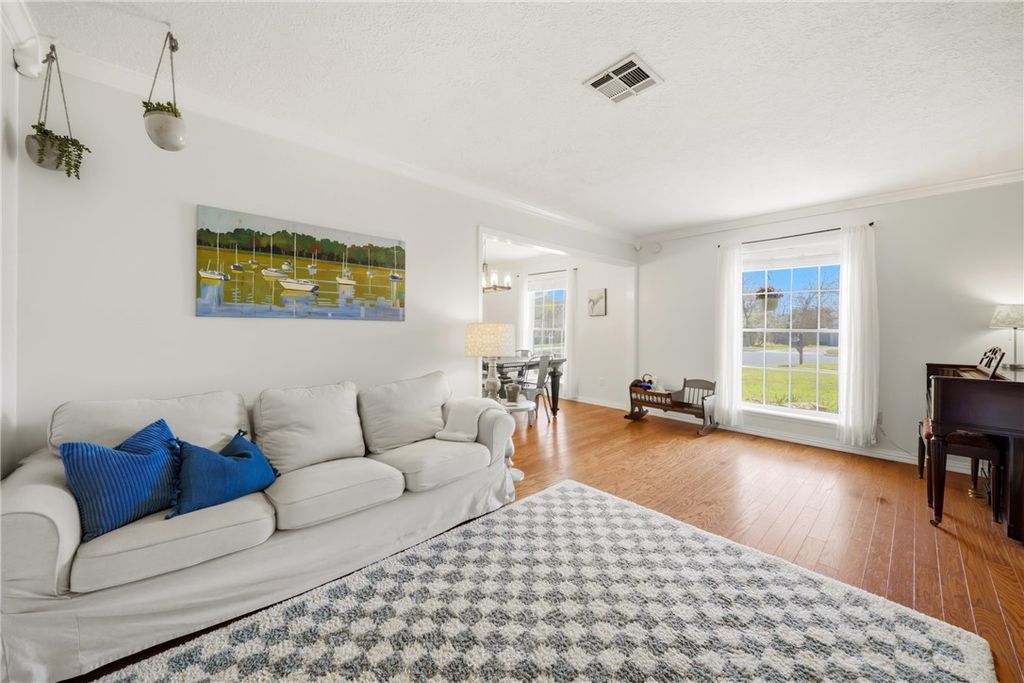 Conveniently located in the quaint and charming Windwood neighborhood, this home sits on a cul-de-sac lot and offers loads of character! The appeal begins with the landscape that showcases seasonal plantings to delight the senses and attract butterflies! Enter through the beautifully updated front door to find a functional and inviting layout with formals at the front. The light and bright family room with soaring ceilings, brick fireplace and built-ins is the hub of the home. The pretty kitchen features a built-in bar with beverage fridge and a newly installed dishwasher. Wine fridge and main fridge convey. Down the hall you'll find 4 generously sized bedrooms and the guest bath with a wall of built-ins. The primary suite, with view to the backyard, features a large walk in shower w/rain head. The home features abundant storage throughout with a walk in closet serving the primary. Out back you'll find the idyllic gathering spaces to enjoy with family and friends! Extension on garage offers space for workshop, art room, storage, etc. TV in the family room, washer/dryer convey. This is the one you've been waiting for!