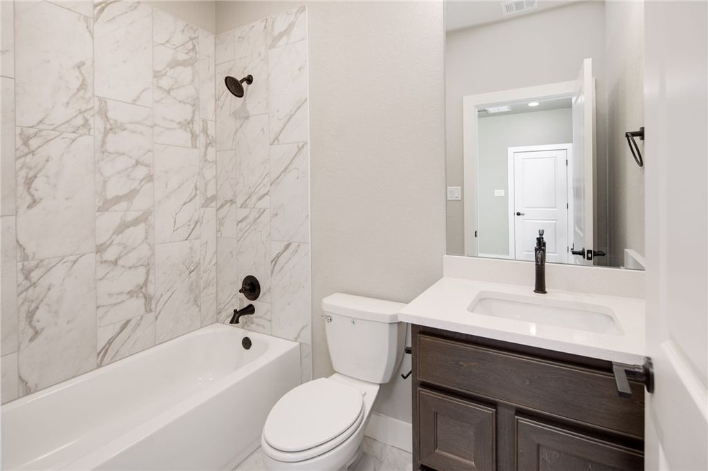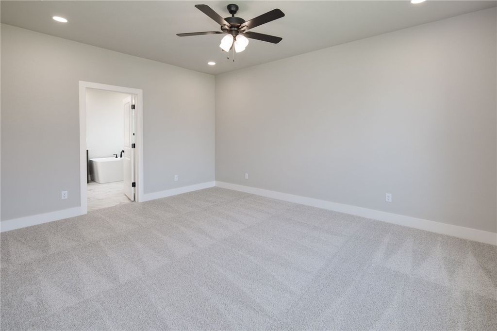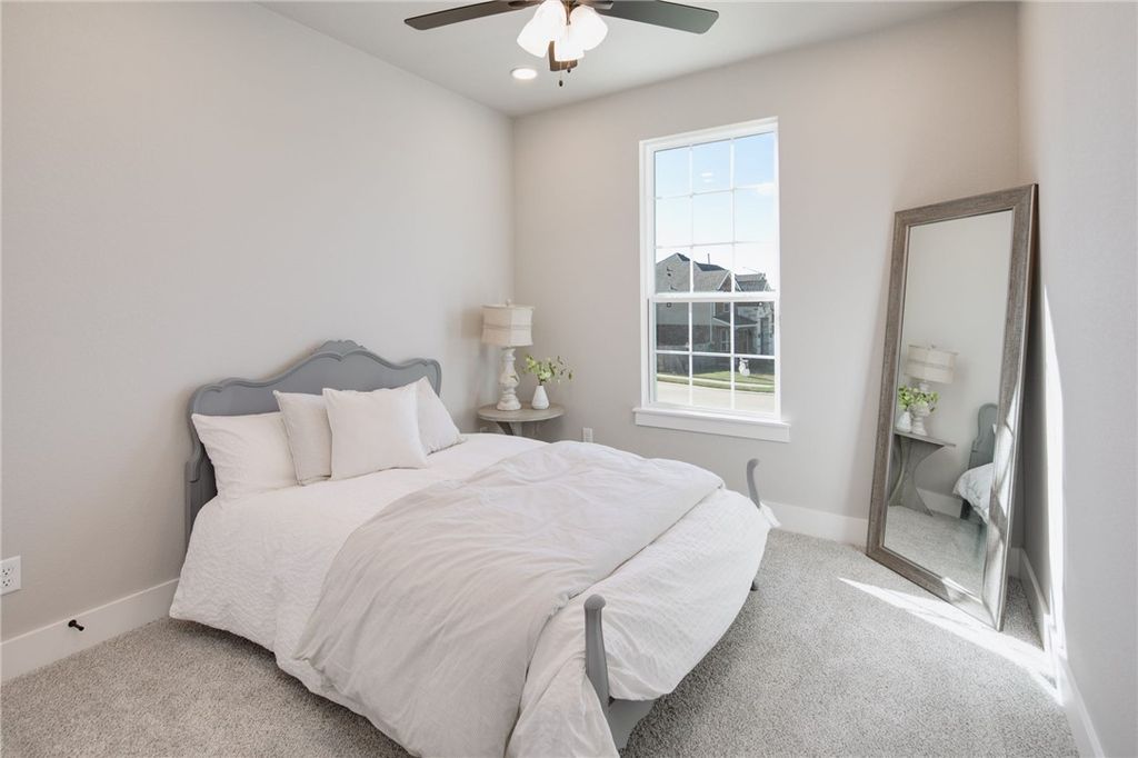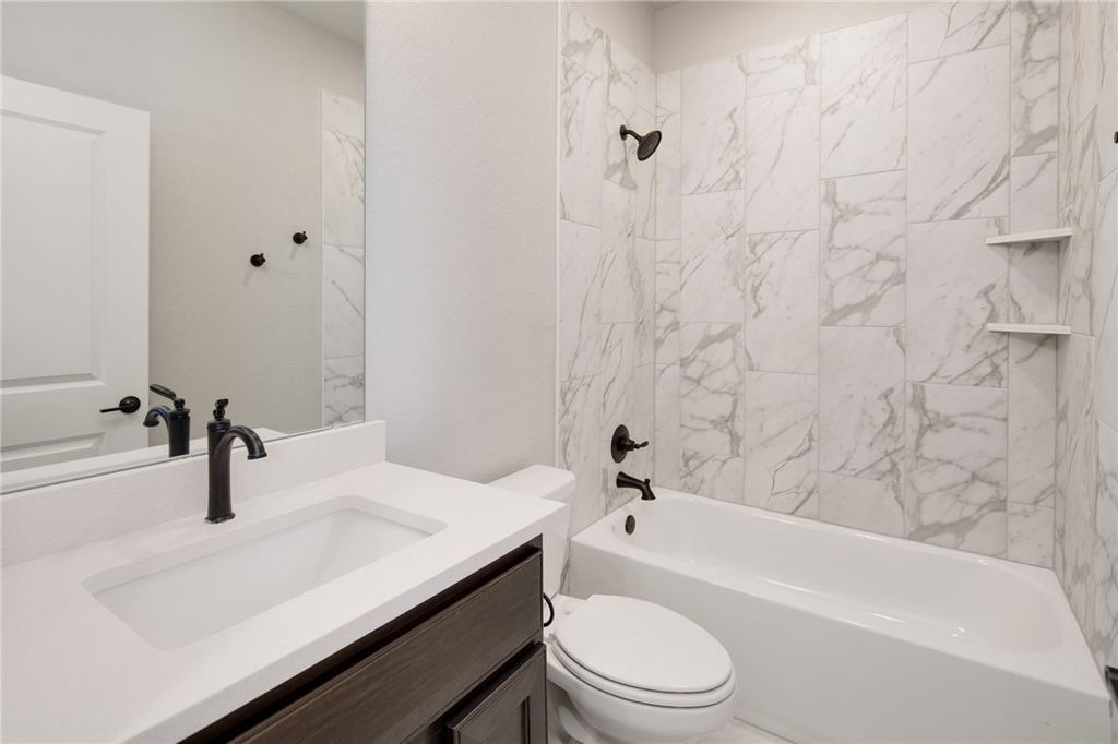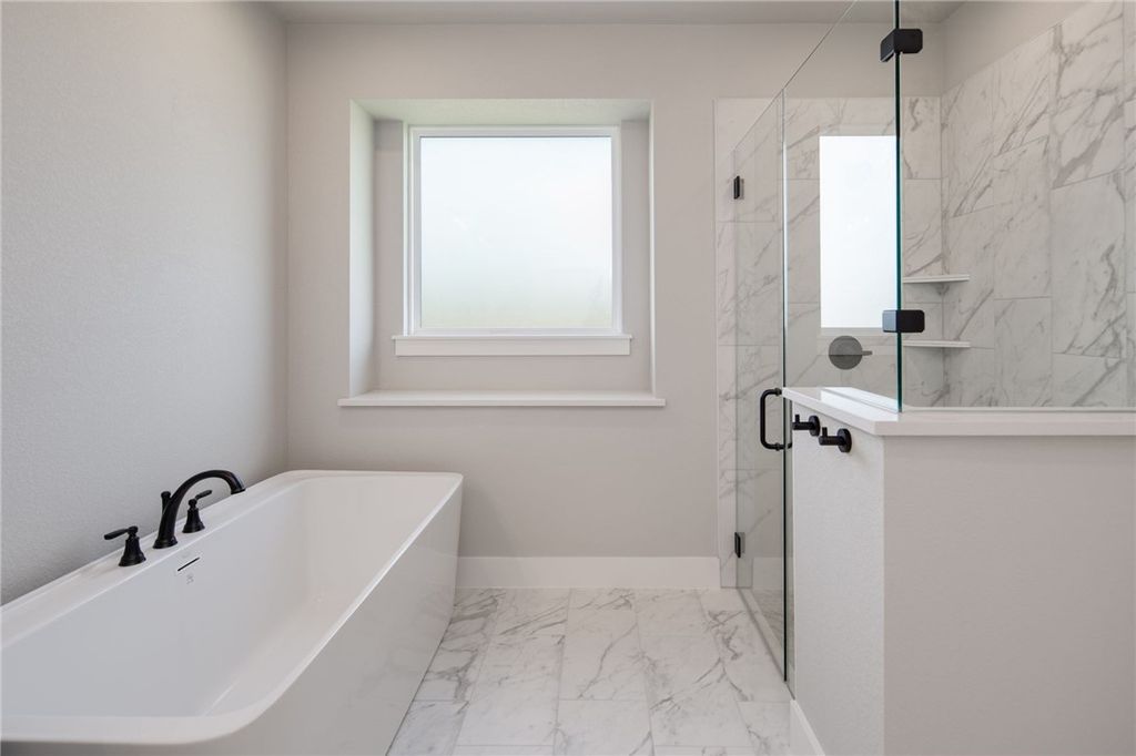 Welcome to modern luxury in this newly constructed home featuring an open concept design with the master suite downstairs. Nestled in a desirable neighborhood, this residence boasts a spacious layout ideal for both daily living and entertaining. The heart of the home is the gourmet kitchen, complete with quartz countertops, a built-in oven, gas cooktop, and a walk-in pantry, offering functionality and style for culinary enthusiasts. Upstairs, a second living area provides additional space for relaxation or play, complemented by three bedrooms. One bedroom includes an en suite bathroom, while a hall bathroom serves the remaining bedrooms, ensuring comfort and convenience for family and guests. The master bathroom is a retreat with a standalone tub, separate shower, double vanities, and direct access to a large walk-in closet that seamlessly connects to the laundry area, adding ease and efficiency to daily routines. This home epitomizes modern living with its thoughtful design, upscale finishes, and practical layout, offering a blend of comfort and sophistication. Schedule your showing today and envision the possibilities of calling this impeccable property your new home.