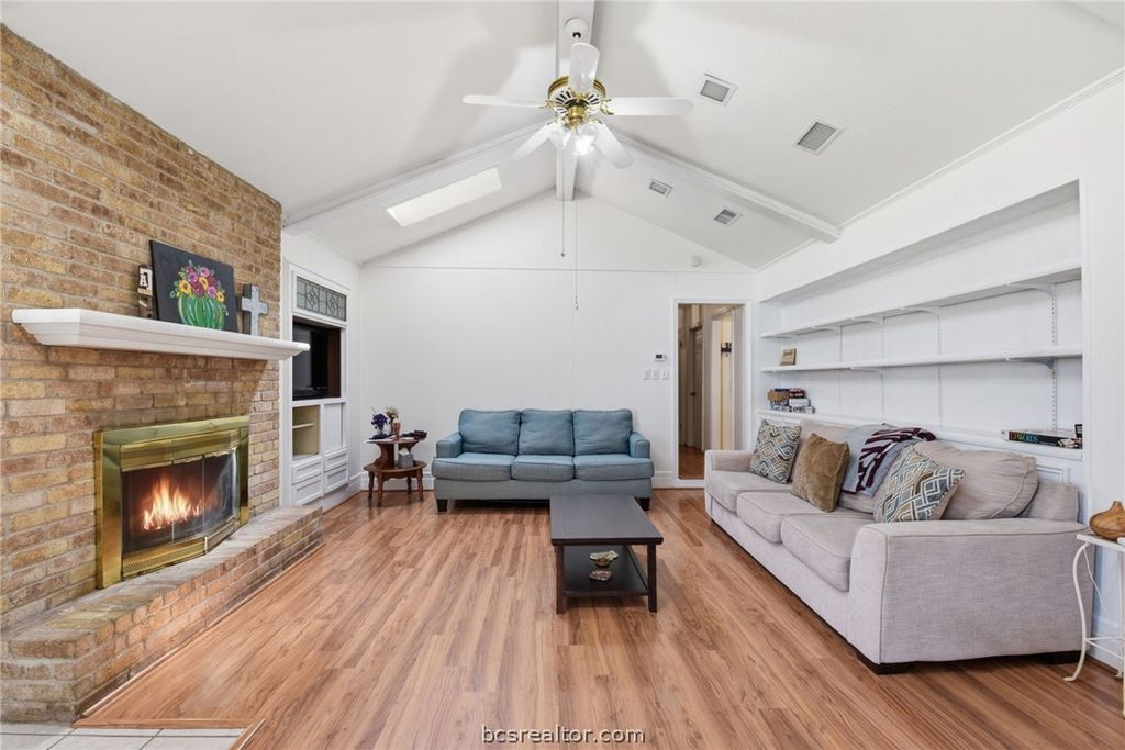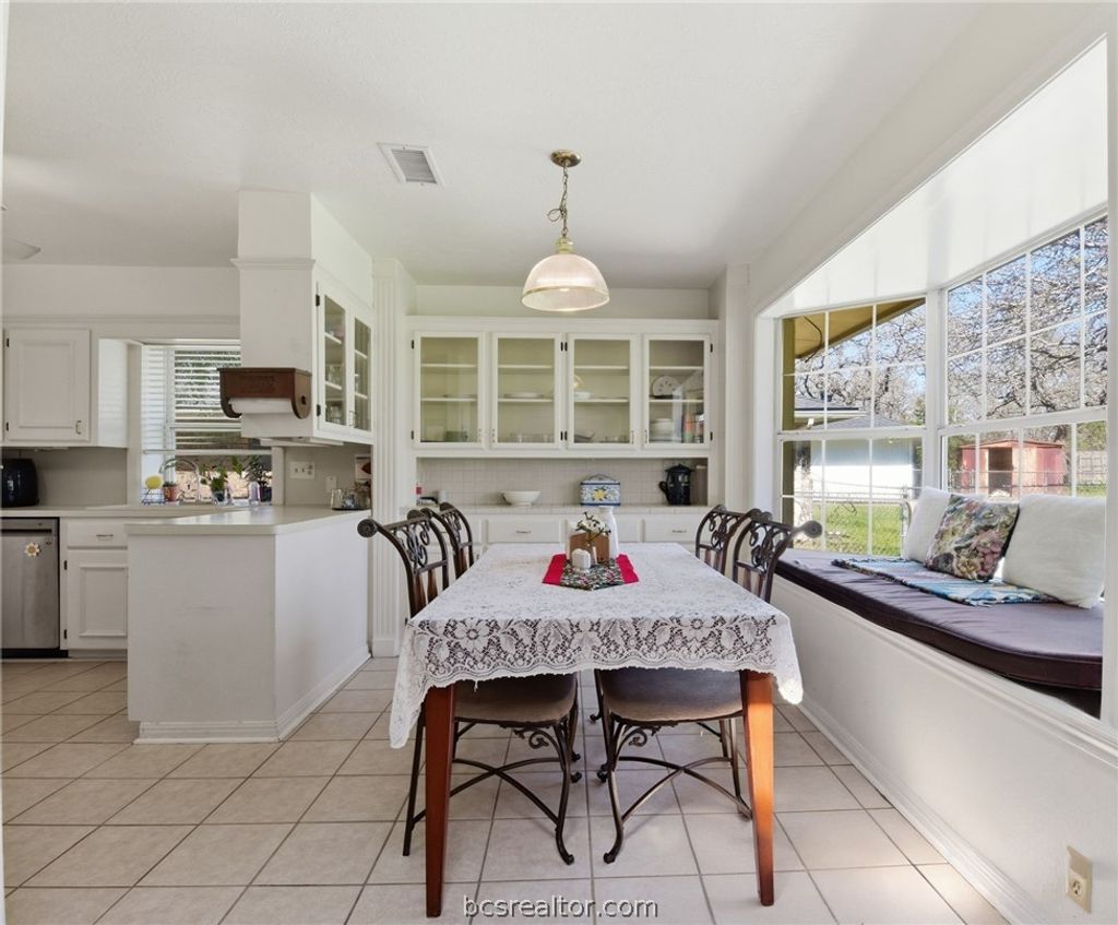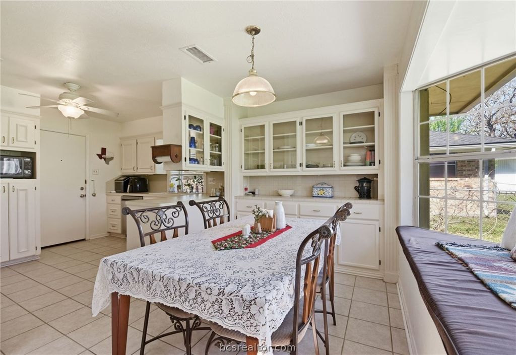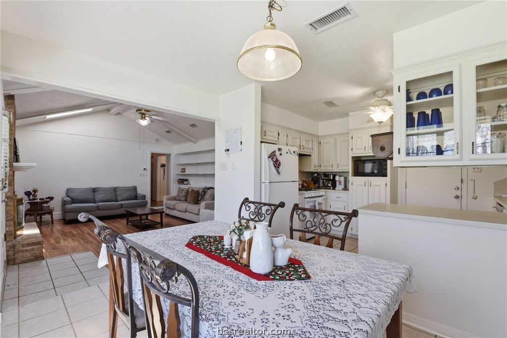 Single-family residence located at 2011 Southwood Dr in College Station, Texas, built in 1975 and situated within an established neighborhood. This property offers a functional layout with four bedrooms and two bathrooms, providing flexibility for a variety of living arrangements. The living area features a vaulted ceiling, fireplace, and built-in shelving. The dining area includes a bay window with seating, glass-front cabinetry, and a built-in buffet. The kitchen is equipped with a gas stove and ample cabinet storage. Interior finishes include tile and laminate flooring, along with natural light throughout the home. The property sits on a lot with both front and back yard space. The backyard includes a deck and pergola for outdoor use. The home offers convenient access to major roadways including Texas Avenue and Harvey Mitchell Parkway, and is located near retail, dining, and grocery options, as well as in proximity to Texas A&M University.
