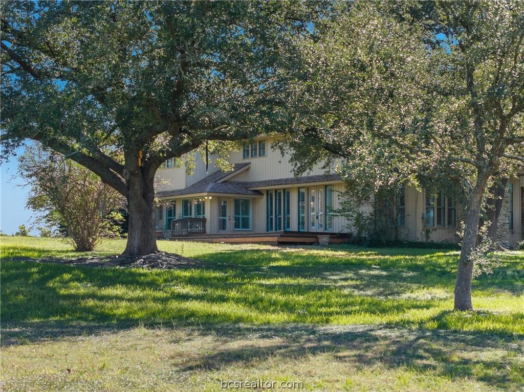 Discover peaceful country living in this stunning 5-bedroom, 3 full and 2 half-bath custom home set on 5.74 acres in Navasota. With 4,020 sq ft of living space, this timeless estate combines classic Texas charm with modern functionality and scenic beauty. Inside, you'll find an inviting living area anchored by a gorgeous stone fireplace, surrounded by natural light and serene views of the property. The chef's kitchen features generous counter space, stainless steel appliances, a large breakfast nook, and custom wood cabinetry. The primary suite offers a private balcony, a spa-inspired bath with jetted tub and walk-in shower, and dual walk-in closets. Four additional bedrooms provide flexible living arrangements for guests or family, including one on the main level. Step outside to your private retreat, complete with a heated pool, covered patio, and framed by mature trees. The expansive five-car garage provides ample space for vehicles, equipment, or hobbies, while the property's open acreage is perfect for outdoor living, gardening, or keeping animals. Conveniently located near College Station and Bryan, this home offers the perfect blend of privacy, comfort, and convenience, an ideal setting for peaceful living or weekend escapes.