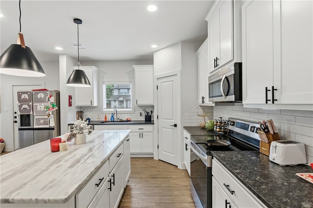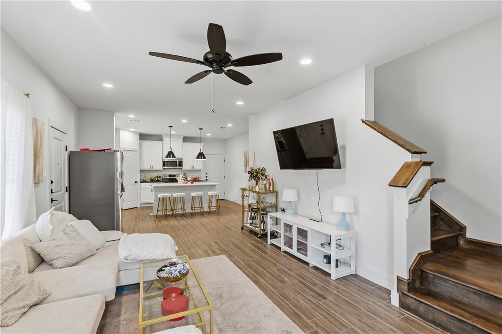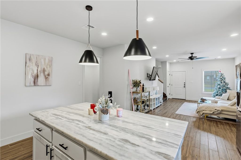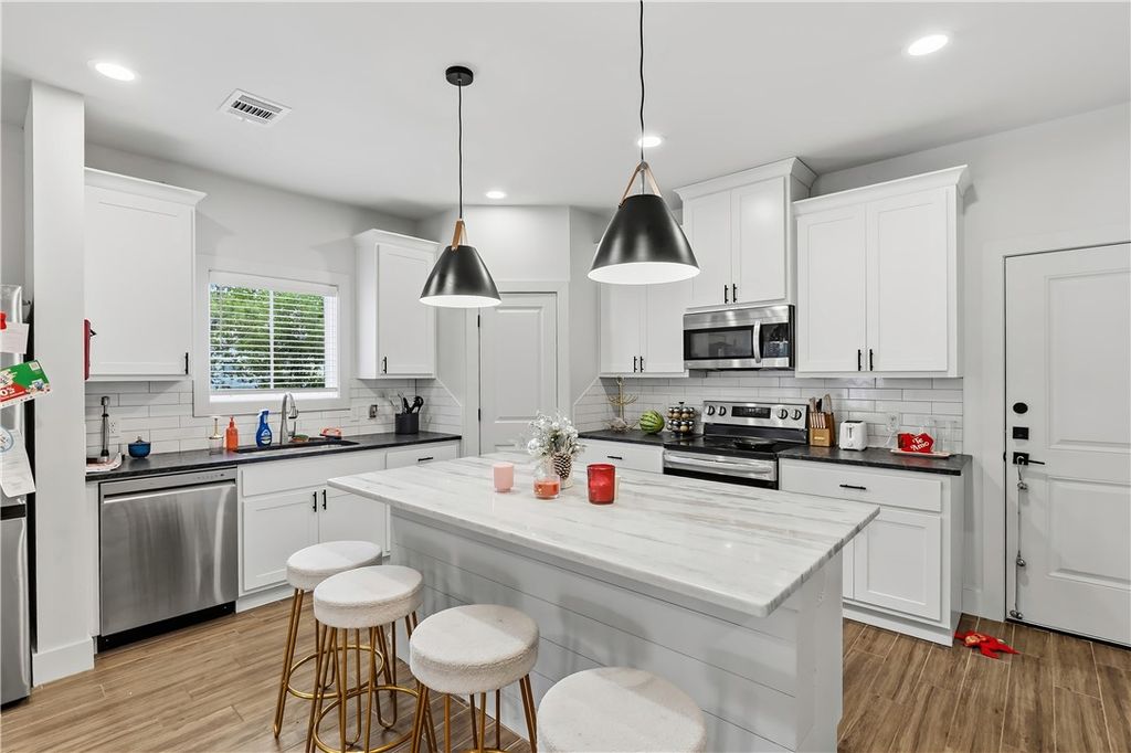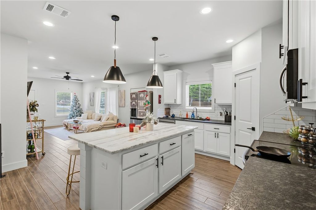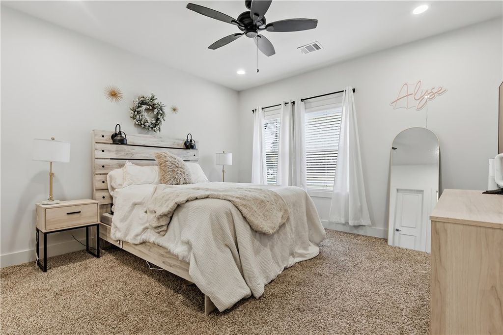Nestled less than 1 mile from the Texas A&M campus, this stunning 4-bedroom, 4-bathroom home with two living spaces and a study offers the perfect blend of modern style and smart investment potential. The open-concept kitchen is a true centerpiece, featuring high-end finishes throughout including granite countertops, an island, stainless steel appliances, and modern pendant lighting. Wood-look tile flooring flows throughout the main living areas, while plush carpet adds warmth and comfort to all bedrooms and the spacious upstairs living area. Matte black hardware and fixtures are carried consistently throughout, giving the home a cohesive, contemporary farmhouse feel. Recessed lighting and ceiling fans in every room ensure comfort year-round. Already leased through the 2026-2027 term, this is a true turnkey opportunity with great cash flow opportunities. Don't miss out "” schedule a private tour today! Currently leased at $3,800 till 7/25/26 and tenants renewed for 26-27 term at $3,900.