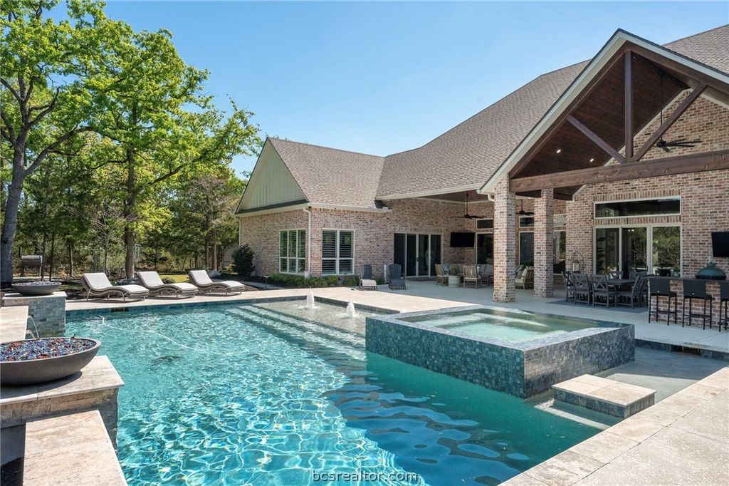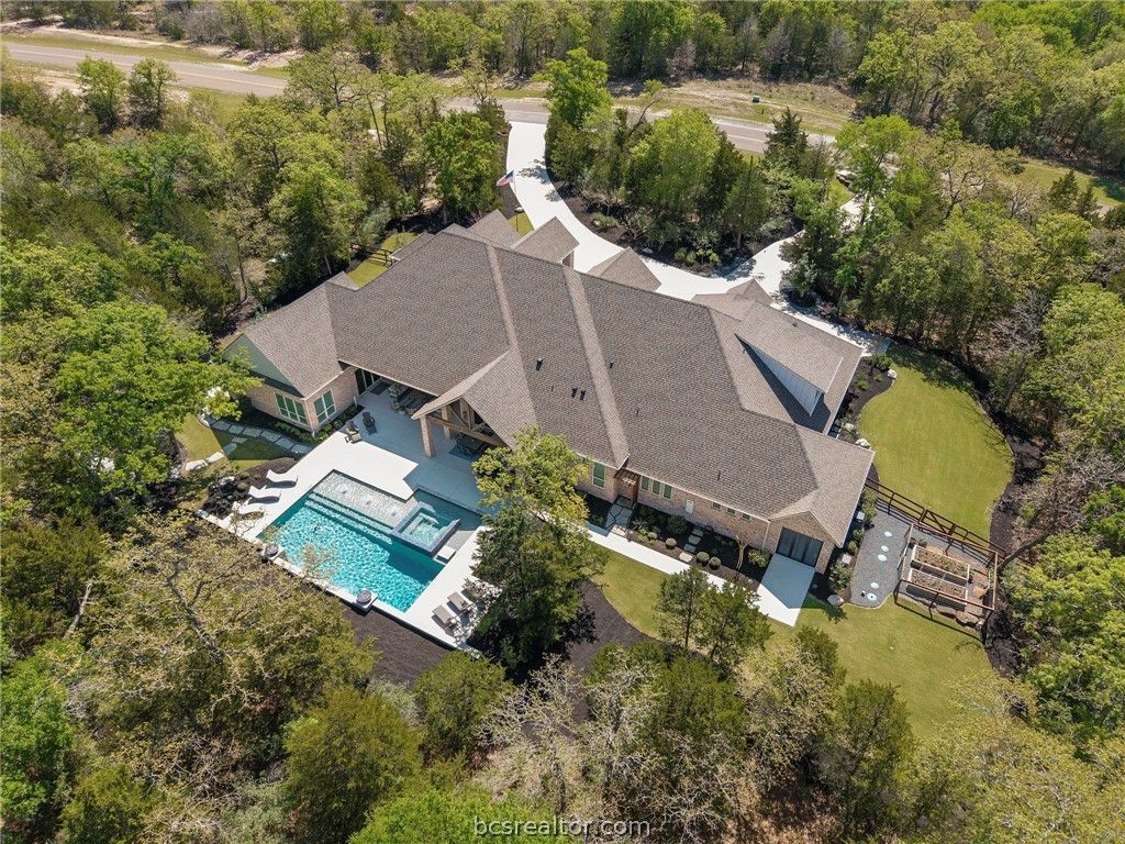 Builder's personal home with every amenity imaginable! Located on a large wooded 4.1 acre lot with amazing curb appeal featuring extensive landscaping, extra wide circular drive & large covered porte cochere this home offers a dramatic elevation with wooded privacy. The dramatic entry beckons guests into the floor plan offering 6,700 SF with 5 spacious bedrooms, 5 & a half baths, 3 living spaces, 2 dining areas, a large office + additional smaller study & a large open concept top of the line kitchen with incredible walk-in butler's pantry. Appliances include Thermador commercial range, two dishwashers, second oven, ice maker, pot filler, built-in Sub-Zero refrigerator & more! Living areas include a family room with a beam accented cathedral ceiling and stone fireplace, a huge game room with large wet bar & a 3rd private living area. The private primary suite offers a spa like bathroom with huge walk-in shower, an enormous closet and a private workout room. The outdoor entertaining space offers a sprawling patio complete with impressive outdoor kitchen overlooking the resort style pool & spa with a tanning ledge & waterfall. The over-sized 3 car garage has a Stampede coated floor &has a separate large storage closet. A 3-car porte cache off of the front of the garage offers even more covered parking. A large mud room open to a spacious laundry room with extensive cabinet storage. Extensive storage, detailed moldings with high end finishes and appliances throughout!