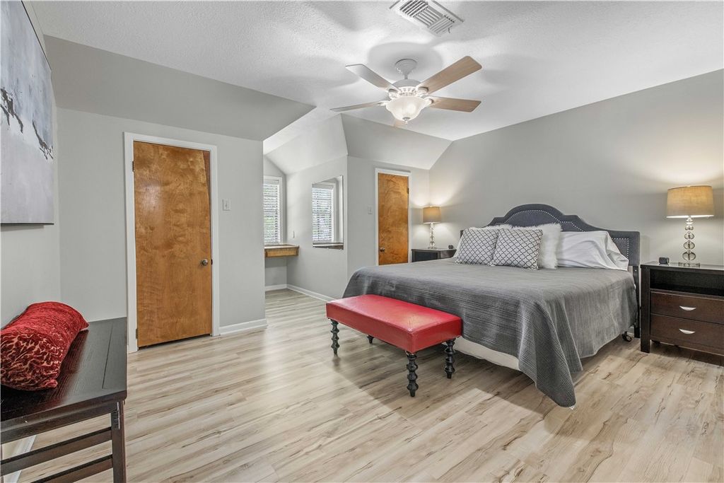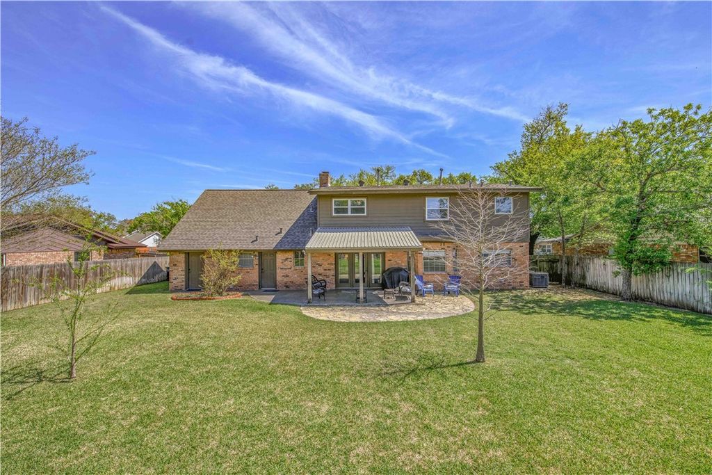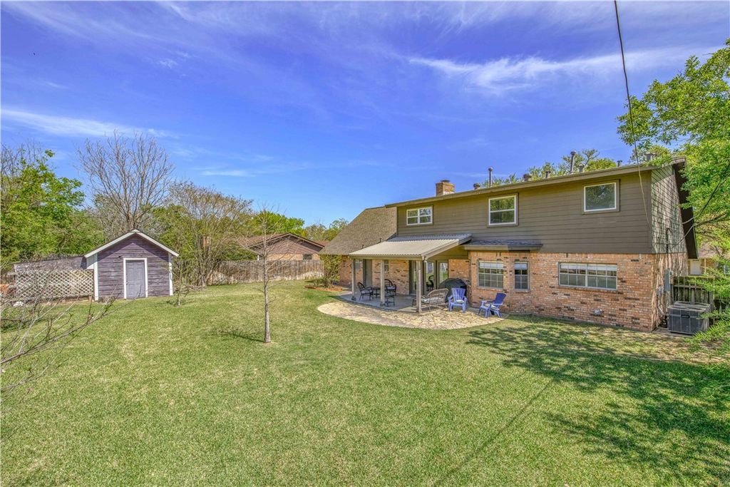 Situated in the highly desired Southside neighborhood directly across from Texas A&M University, this inviting single-family home offers 4-5 generous bedrooms and 3.5 bathrooms. The property is just minutes from campus and an easy walk to Kyle Field, making it a prime fit for Aggie parents, gameday buyers, or anyone wanting everyday convenience near the university. Step through the impressive two-story entry into a home featuring attractive vinyl plank and tile flooring throughout, giving it a clean, updated feel. Classic charm balanced with modern touches, including updated bathrooms with granite countertops. Multiple living areas, including a very large upstairs bonus room currently functioning as a second living space and a true 5th bedroom. Downstairs, the open-concept kitchen and living area create a comfortable flow for everyday living and entertaining, including a convenient half bath for guests. Out back, a stained wood-covered patio extends your living and entertaining space outdoors"”great for grilling, family get-togethers, or pre-game tailgates before walking over to the stadium. Storage is abundant, with a huge upstairs storage area plus a large backyard shed ideal for lawn equipment, tools, or seasonal items. Parking is easy with an attached 2-car garage providing room for vehicles and extra gear. With a newer roof, newer fencing, and a location that's tough to beat, this Southside gem deserves a spot at the very top of your must-see list.