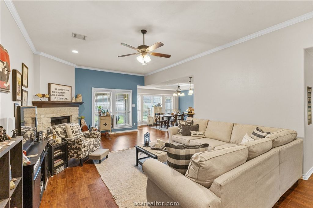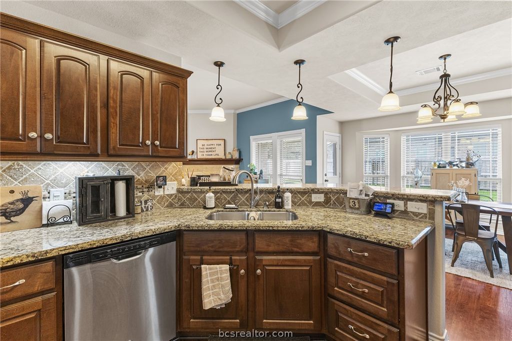 Welcome home to Dove Crossing "” a centrally located neighborhood just minutes from schools, parks, shopping, and medical facilities. Set on a generous lot, this 3-bedroom, 2-bath home blends everyday comfort with thoughtful design. A spacious living area welcomes you with a raised ceiling, corner stone fireplace, and large windows that frame views of the backyard. The kitchen features granite countertops, decorative tile backsplash, stainless steel appliances, a walk-in pantry, and an eating bar that opens to the breakfast area "” for morning coffee or casual meals. Tucked at the back of the home, the primary suite offers a peaceful retreat with dual vanities, a garden tub, stand-alone shower, and oversized walk-in closet. Two secondary bedrooms provide ample space, each with generous closets and built-in shelving. An oversized laundry room, located just off the kitchen, includes cabinets, counter space, and custom storage to keep life organized. Outside, a covered patio overlooks the privacy-fenced backyard and full-yard sprinkler system "” recently inspected and cleared for optimal performance. A brand new water heater adds to the home's recent updates. Thoughtfully maintained, this home offers charm, convenience, and comfort in one of College Station's most accessible communities. Leased through May 31, 2026.