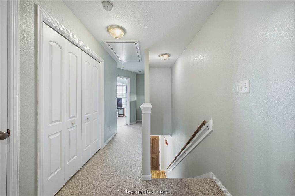 Beautifully maintained 2-bedroom, 2.5-bath townhome located in the gated community of River Ridge Townhomes! This move-in ready home features a recently replaced roof (less than 1 year old) and a highly functional layout. Upstairs, you'll find two spacious bedrooms"”each with its own built-in study nook just outside the room"”plus conveniently located laundry connections between bedrooms. Downstairs offers a comfortable and open layout with a welcoming family room, a well-appointed kitchen featuring an eating bar and breakfast area, and a convenient half bath for guests. Enjoy outdoor living on the private back patio, fantastic for relaxing or entertaining. Conveniently situated directly across from the community clubhouse and pool, offering easy access to amenities. Located just 10 MINUTES FROM TEXAS A&M UNIVERSITY, this property is more than well-suited for students, faculty, or investors! Including two designated parking spaces and situated on the TAMU Bus Route - just one block away, this townhome has strong rental potential. Schedule your showing today!