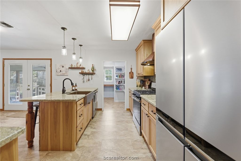 Fully remodeled yet rich with original character, this stunning 1950s home in the heart of Brenham is truly one of a kind. Thoughtfully updated from 2022-2025 with high-end design and quality materials, every detail has been carefully curated to create a home that stands out from the rest. This 3-bedroom home is filled with natural light, while both bathrooms offer spa-like finishes with designer tile and warm stained wood accents. The kitchen is a dream with custom cabinetry, premium appliances, high-end finishes, and a pantry laundry room addition. Original details like the front door, telephone nook, and stained wood preserve its vintage character. Outside, enjoy a spacious backyard with patio, plus a workshop/storage space. This property also features an RV slab with carport and extra driveway, landscaping with a French drain system, and major system upgrades including PEX plumbing, a tankless water heater, spray foam insulation in the attic, and refinished wood floors.