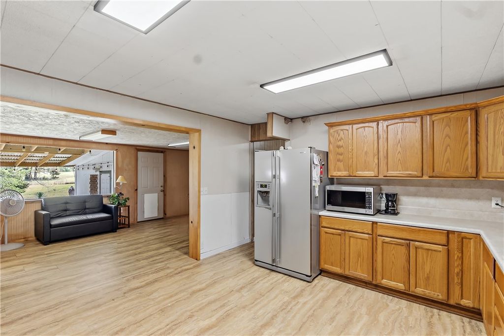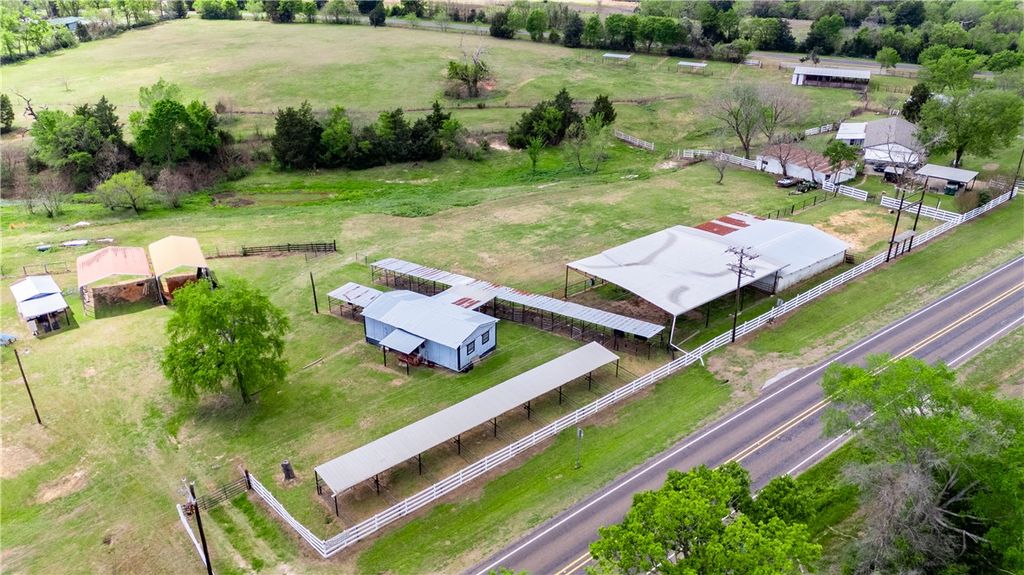 This exceptional 16.86-acre property is fully equipped to support a thriving equestrian operation, with ample room for future expansion. For over 40 years, the current owner has hosted annual summer camps, highlighting the property's functionality, layout, and enduring appeal. The mobile home offers comfortable living with 3 bedrooms and 2 bathrooms, a bonus bunk room complete with three shower stalls ideal for guests, campers, or staff. The home has been well-maintained and features an updated kitchen, new flooring, and an expanded living room. The property includes multiple barns and well-organized facilities. The stud barn (20x30) features four pens, while the mare barn (36x54) includes a concrete alleyway and connects to four spacious 60x30 mare pens. A larger barn (45x42) offers seven stalls and a dedicated feed room, with an open area in front for additional functionality. There are also 20 covered stalls and several paddocks, allowing for easy separation and management of horses. Equestrian amenities continue with a 45x54 arena, a 100x200 lighted outdoor arena, and a 21x36 tack room. A small viewing stand provides a great vantage point for events, training, or competitions. An equipment shed offers additional storage and can be used for hay. Convenient access from HWY 75 allows direct entry to key areas of the property, making daily operations efficient and accessible. This versatile property is ready to meet your needs.