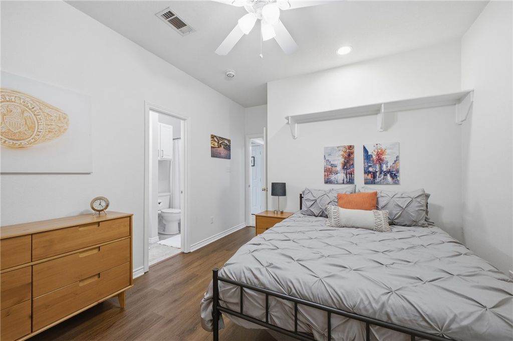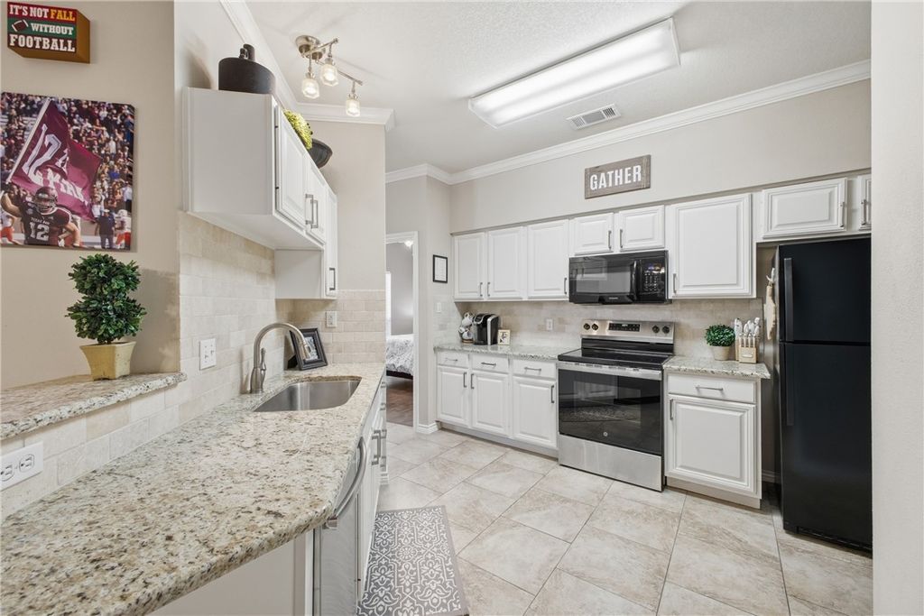 Exceptionally maintained and move-in ready, this one-story end-unit condo offers a functional layout and low-maintenance living"”ideal for a first-time buyer, investor, or Aggie parent. This 3-bedroom, 2-bath condo features no carpet throughout, painted cabinetry with updated hardware, and granite countertops in both the kitchen and primary bathroom, complemented by a sleek kitchen backsplash. Spacious bedrooms include walk-in closets, and the layout is thoughtfully designed for privacy and convenience. The shared bathroom offers individual private vanity spaces for each bedroom, while the tub/shower and toilet area can be closed off"”perfect for roommates or guests. Enjoy the added benefit of three assigned parking spaces and a fenced back patio, ideal for relaxing or entertaining. The refrigerator, washer, and dryer will convey, and furnishings/Aggie prints are negotiable. Located on Deacon Drive just steps from the Texas A&M bus route, this home offers easy access to campus along with nearby HEB, shopping, and dining. This is a prime location that combines comfort, convenience, and accessibility.