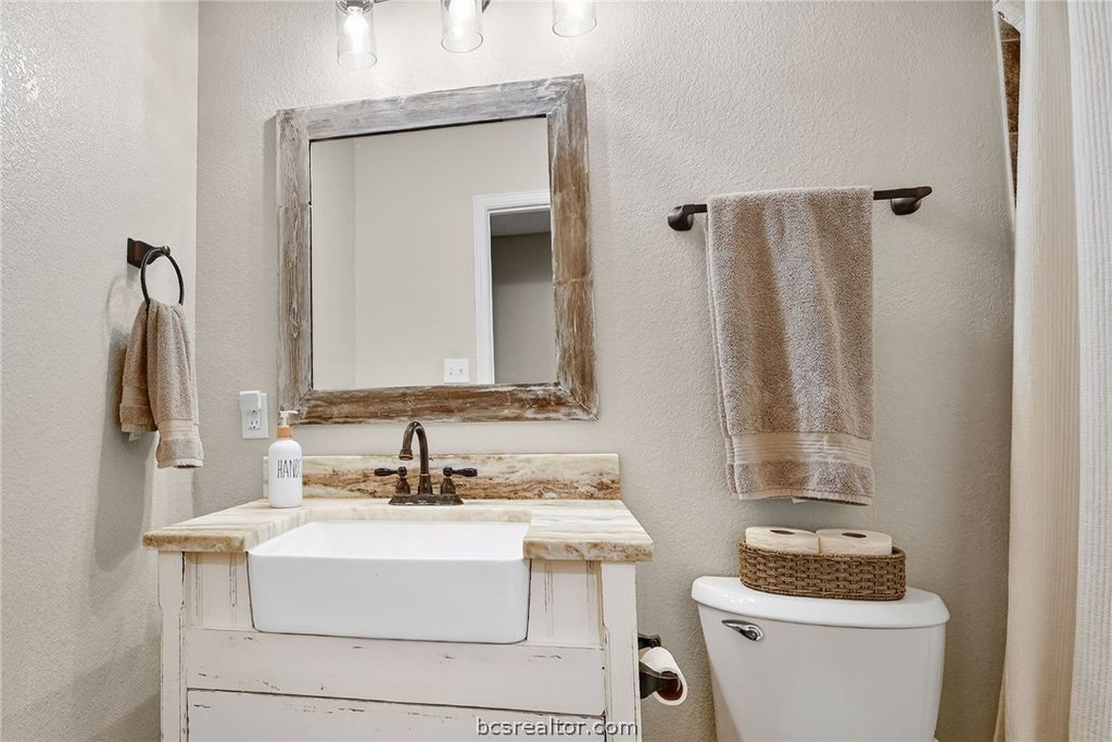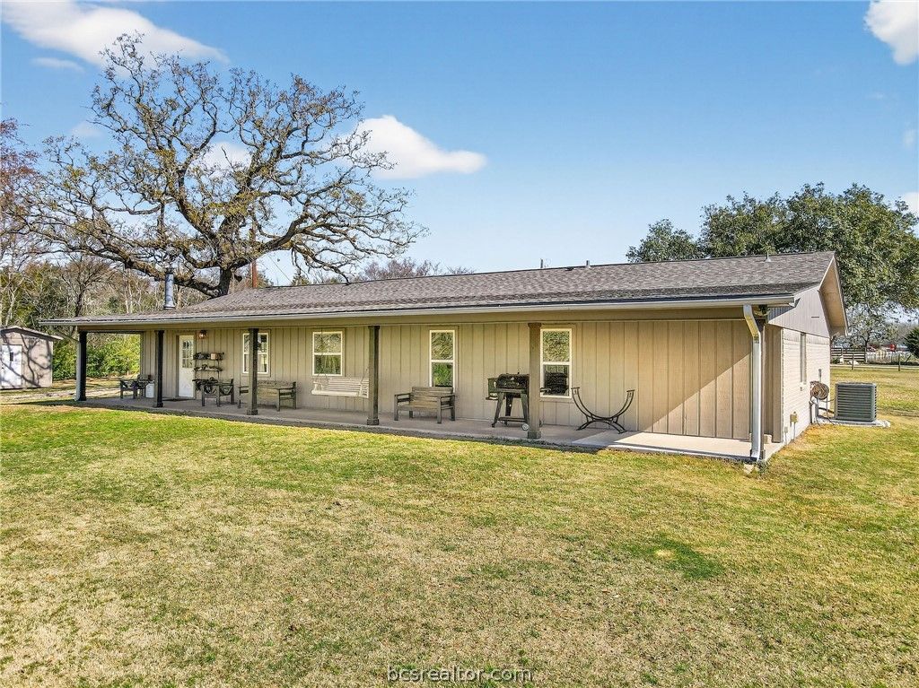 Situated on 2 acres in Bryan, this beautifully updated 3 bedroom, 2 bathroom home offers space, privacy, and modern comfort. The property includes 1 acre fully fenced with an electric gate, providing both security and functionality. Inside, the home has been thoughtfully remodeled, including a 300 SF primary bathroom addition (2018). The inviting living room features exposed wood beam ceiling and a cozy fireplace, creating a warm and welcoming atmosphere. The kitchen is both stylish and functional with granite countertops, stainless steel appliances, and wine storage. The spacious primary suite is a true retreat, complete with a large en-suite bathroom featuring dual sinks, a soaking tub, a walk-in shower, and an oversized walk-in closet. Step outside to enjoy the full-length back porch for relaxing or entertaining, along with a shop for storage, equipment, hobbies, or more. Major updates include a new roof and HVAC system (2025) and a new water heater (2026), offering peace of mind. This property combines modern updates with country living, all while being conveniently located near Bryan-College Station.