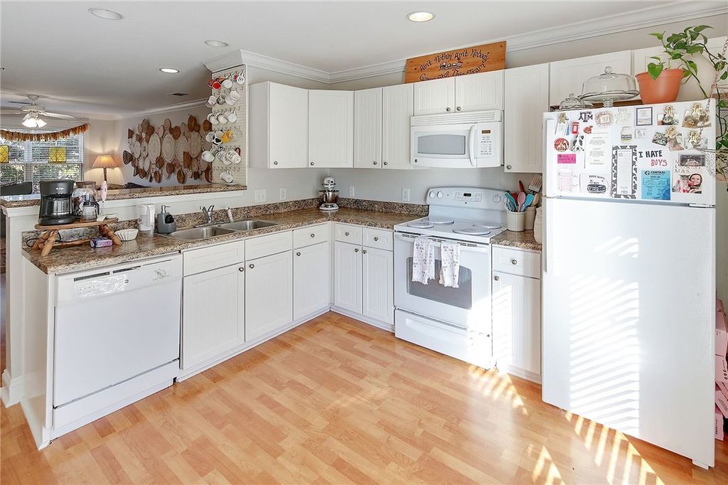 Discover this beautifully maintained 2-bedroom, 2.5-bath condo in The Woodlands of College Station, ideally located just minutes from Texas A&M University with convenient access to the Aggie bus route. Designed for both comfort and functionality, the main level features an open-concept layout filled with natural light, seamlessly connecting the living, dining, and kitchen spaces. French doors lead to a private back patio, perfect for relaxing or entertaining. Upstairs, both bedrooms offer en-suite bathrooms, providing privacy and flexibility for a variety of living arrangements. Residents of The Woodlands enjoy a wide range of amenities, including a resort-style pool with sun deck, 24-hour clubhouse, study lounges, movie room, fitness and recreation areas, business center with complimentary printing, and beautifully maintained outdoor spaces. HOA dues also include cable, internet, and access to community conveniences such as a shuttle to the bus stop, sports courts, and more. Experience low-maintenance living in a prime College Station location, schedule your private showing today.