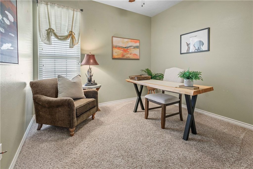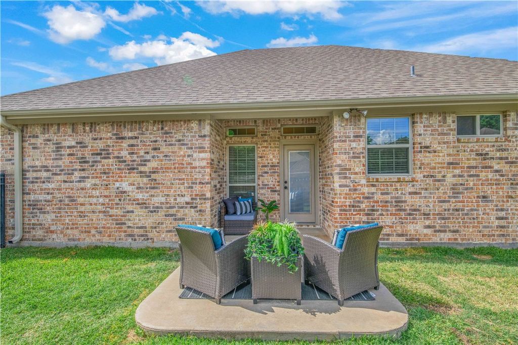 This low-maintenance home is located on a corner lot in the quiet enclave of Lakeside Village in South College Station. The open concept floor plan creates synergy among the living, dining and kitchen areas, creating a setting that's suited for daily life and entertaining. The kitchen features rich cabinetry, granite countertops, ample workspace for both cooking and gathering and overlooks the spacious living room. The primary suite is thoughtfully positioned away from the living room, creating added privacy. The spa-like master bath offers a soaking tub, separate shower and dual granite countertop vanities. The covered back patio invites outdoor relaxation at any time of the day, with a backyard designed for easy upkeep and tranquility. The peaceful location, intentional layout and low-maintenance features make this home a balance of comfort, privacy and everyday convenience.