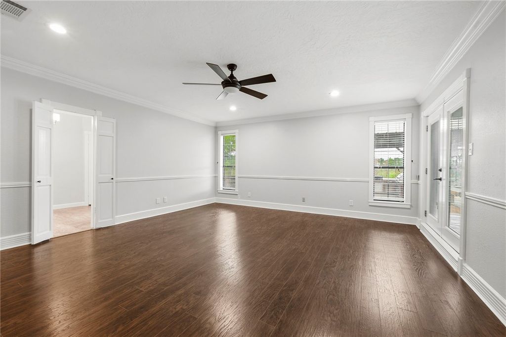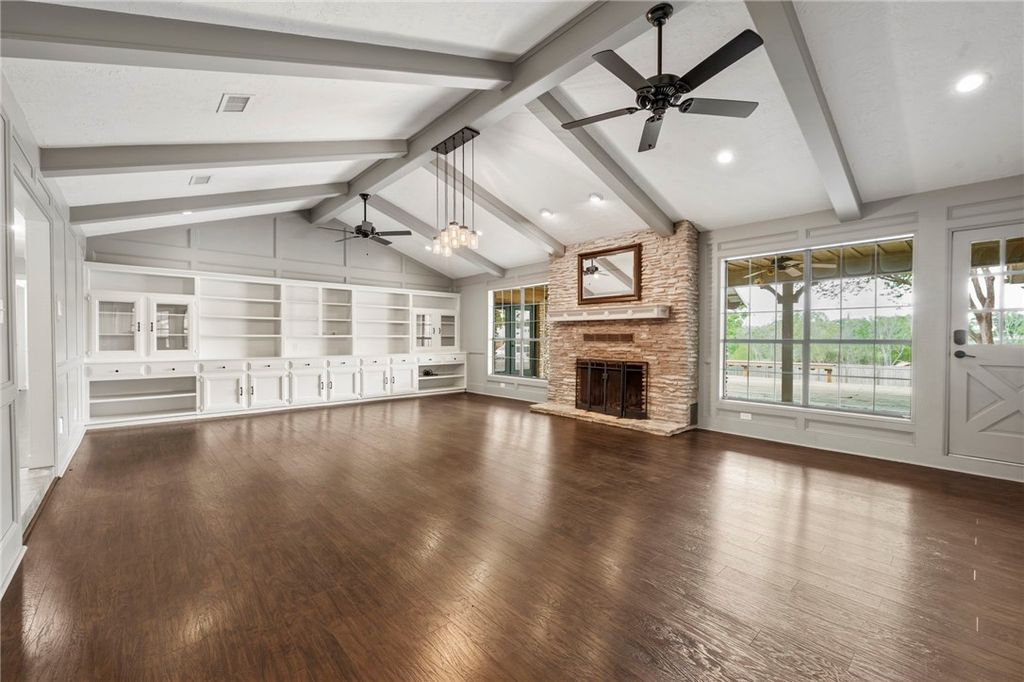One of the best locations in all of Aggieland! Three miles to Kyle Field and TAMU campus. This stunning home has so many features inside and out and has been completely updated with quality materials and craftsmanship. From the expansive front yard, cruise through the entrance into a formal dining and grand living room complete with wall to wall built ins and a floor to ceiling fireplace with picturesque windows and a view of the gorgeous back yard. The kitchen is a chef's dream with gas range and stainless steel hood, double ovens, built in microwave with tons of counter space and storage. You will find an extra office/flexspace with built ins off the kitchen. The large laundry room leads to a big 2 car garage and another garage/flex/storage/gym space with private door. The 3 large bedrooms down the hall share a beautiful bathroom space with tub/shower combo, seperate toilet and 3 sinks and vanities! Step into the primary bedroom bathed in bright light from the windows and double doors leading to the back patio. The primary bath has his/hers sinks, a walk in shower, a vanity space, 2 closets and a toilet room with another sink/vanity. This acre lot is filled with goodies like a large step down deck into a covered outdoor kitchen pavillion, space for batting cages, and an accessory living/entertaining space for watching sports and gameday with soundproof panels, premium speakers and a projector screen. This property has so much to enjoy, you have to see it in person!