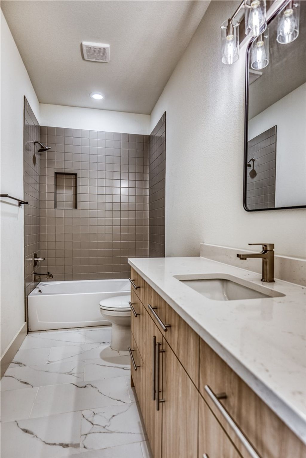 Come check out this stunning 1,980 square foot open concept layout in Brewster Pointe. This 3 bedroom, 2.5 bath home with an office space offers an extremely practical floor plan! The exterior of the home is a beautiful brick. As you open the modern front door, the study/office space boasts large windows with great lighting. Connecting, the open concept living room and kitchen complete with beautiful vinyl flooring and and a ton of natural light. The kitchen hosts quartz countertops, stainless steel drop in sink, unique custom cabinetry, full appliance package, and modern lighting. The large master suite is extremely inviting with large windows and a spa-like primary bath. The primary bath includes dual sinks, custom tile, large walk-in shower, and a sizeable walk-in closet. The other two bedrooms can be found on the other side of the home, spacious with walk in closets as well as a large bathroom. A great neighborhood close to everything College Station has to offer. Schedule your showing today!