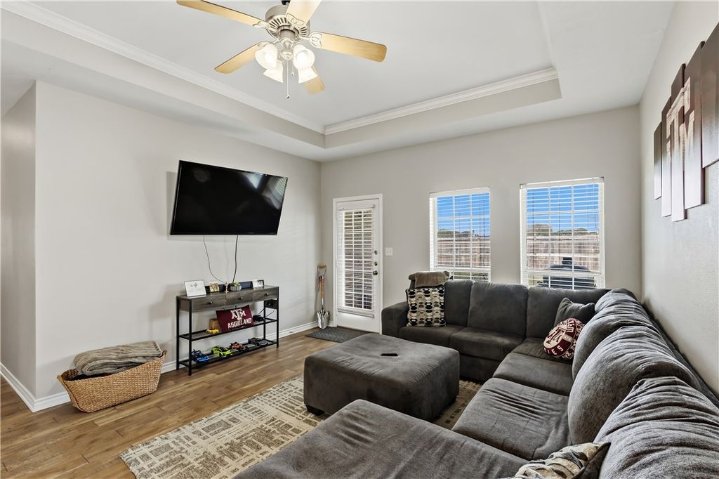 Welcome to 1011 Bougainvillea in College Station, Texas, a beautifully designed 4-bedroom, 3-bathroom home offering a functional layout, timeless finishes, and an ideal location in the heart of the Brazos Valley. This residence features a spacious open-concept living area filled with natural light, seamlessly connecting the living, dining, and kitchen spaces, perfect for both everyday living and entertaining. The kitchen is thoughtfully designed with ample cabinetry, generous counter space, and a layout that supports both convenience and style. The primary suite provides a private retreat with a well-appointed en-suite bath and ample closet space, while the additional bedrooms offer flexibility for a variety of needs such as guest accommodations, workspace, or hobbies. Step outside to enjoy a well-sized backyard with room to relax or entertain. Conveniently located near local shopping, dining, parks, and with easy access to Texas A&M University, this home combines comfort, versatility, and accessibility. Schedule your private showing today to experience all that 1011 Bougainvillea has to offer.