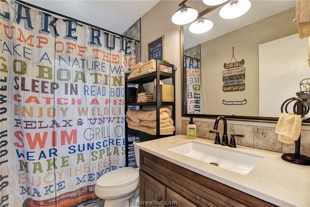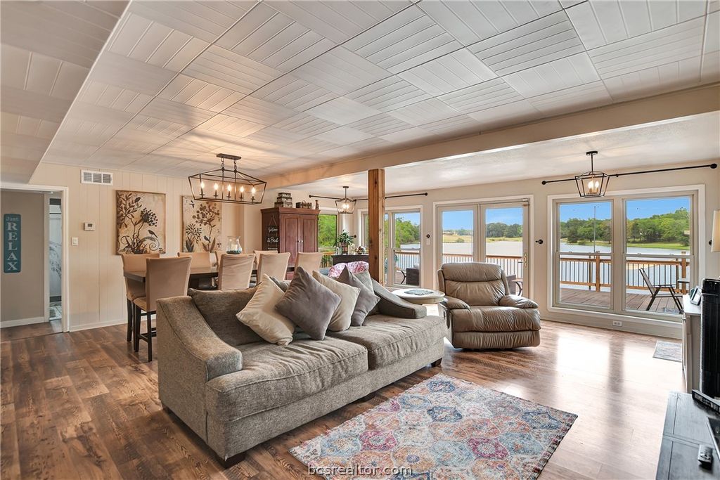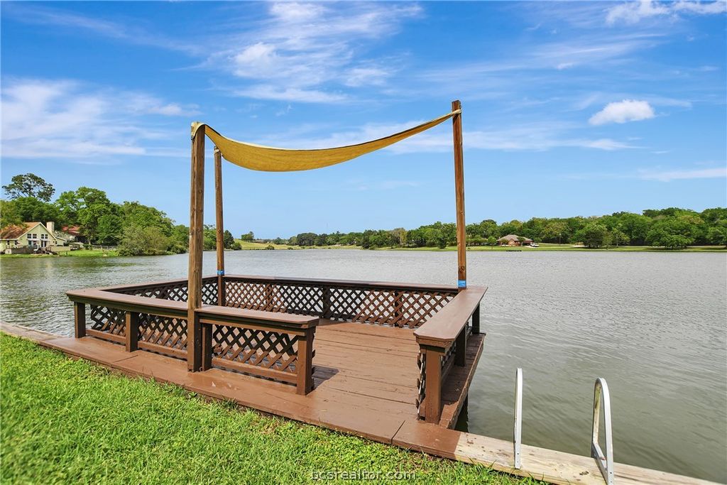 Turnkey waterfront property with built-in income potential in Hilltop Lakes! This spacious 7-bedroom, 4-bath home sits on over 100 feet of open water, offering the perfect blend of lifestyle, flexibility, and investment opportunity. Enjoy breathtaking lake views from expansive decks, a private dock for fishing or boating, and outdoor spaces designed for entertaining or relaxing by the water. Inside, the home features a bright, open layout with soaring ceilings, abundant natural light, and thoughtful updates throughout. Upstairs kitchen is enhanced with quartz countertops, modern appliances, and updated finishes, while refreshed bathrooms, new flooring, and fresh paint create a clean, move-in-ready feel. An electric fireplace adds warmth and charm to the main living area. The lower level offers a separate entrance and private living space ideal for income-producing Airbnb and/or long-term leasing, guest quarters, or multi-generational living. This setup provides excellent flexibility for generating revenue while maintaining privacy on the main level. Additional highlights include updated windows, a fully fenced yard, and well-maintained systems. Located in the amenity rich Hilltop Lakes community with golf, lakes, pool, and more, all within a short drive to Bryan/College Station. Whether you're looking for a full-time residence, weekend escape, or investment property, this one checks every box.